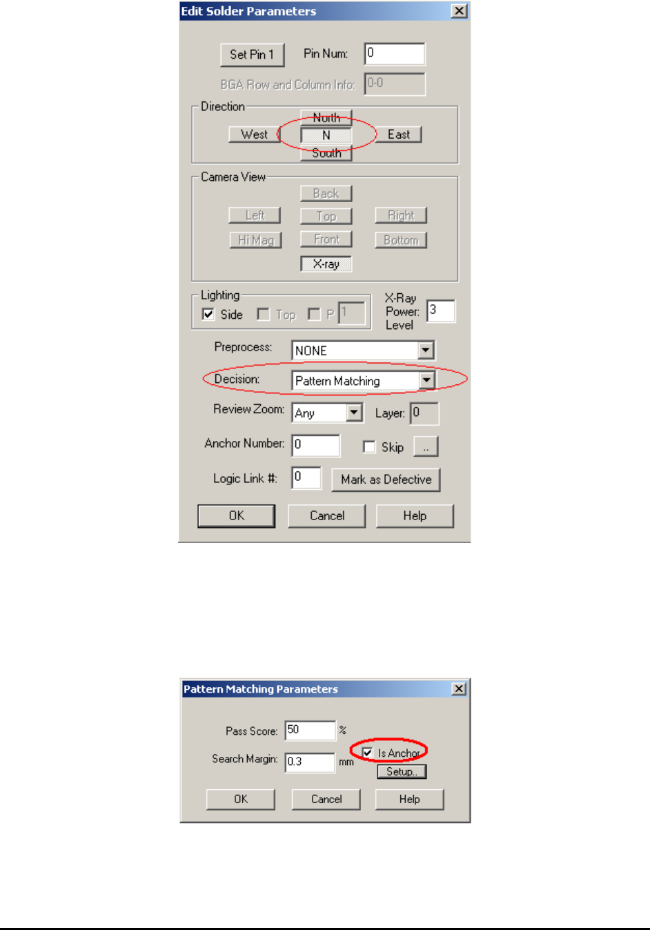algorithm for the inspection box and select direction N in the Edit Solder Parameters dialog. Also
