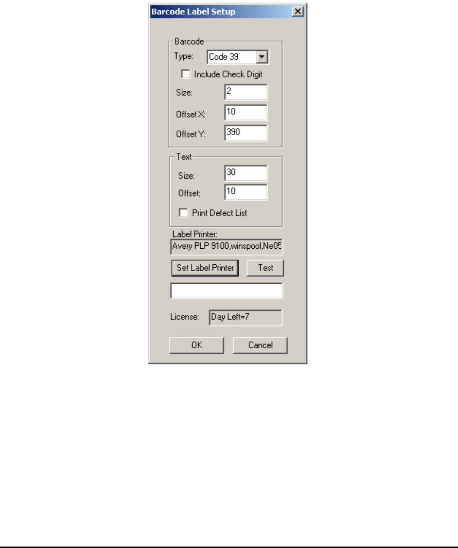 barcode label printer.) Press the Test button to verify barcode printing.