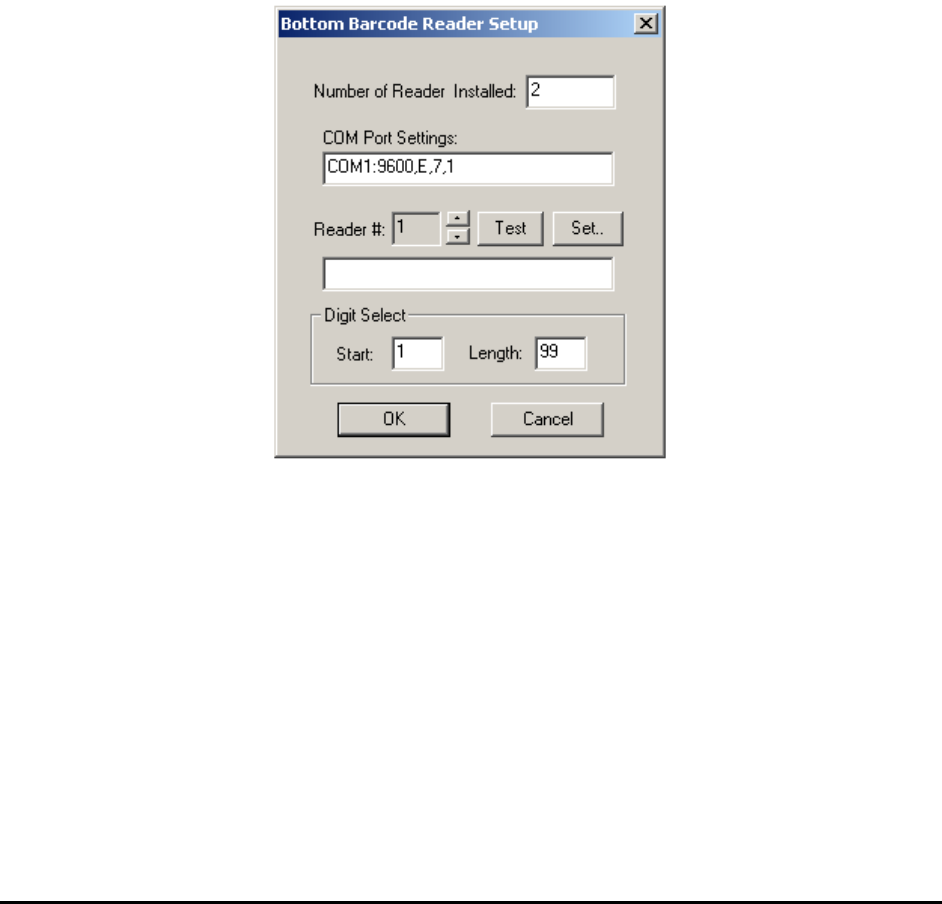 Pressing the Setup button on the System Options dialog displays the Bottom Barcode Reader