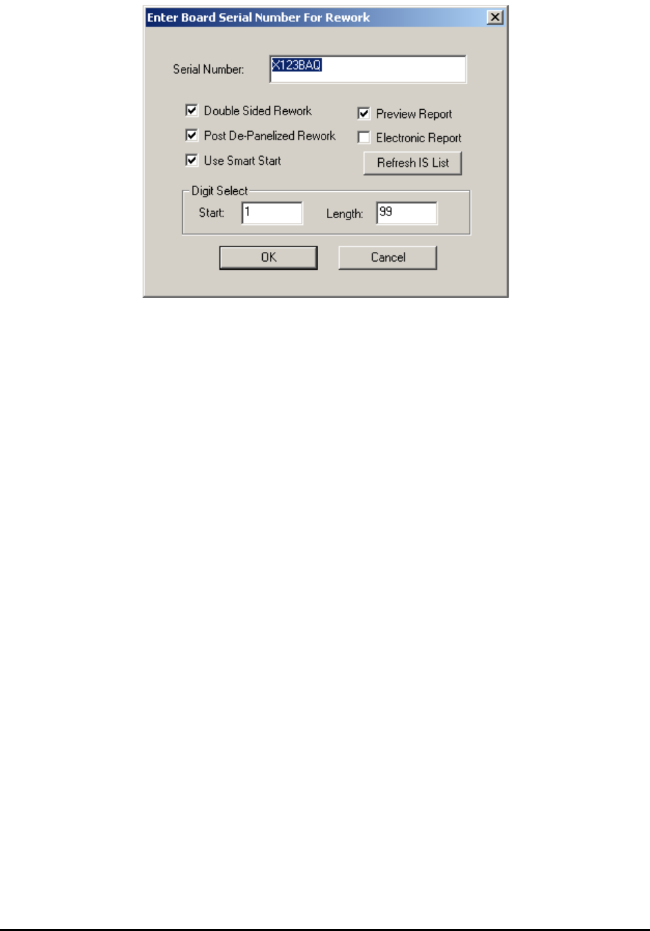 appears where the user can enter the board’s serial number to rework. If the board is bar-coded