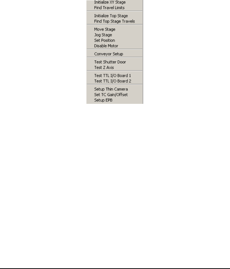 The Jog Stage option launches the ControlPoint utility program to exercise the XY Stage.