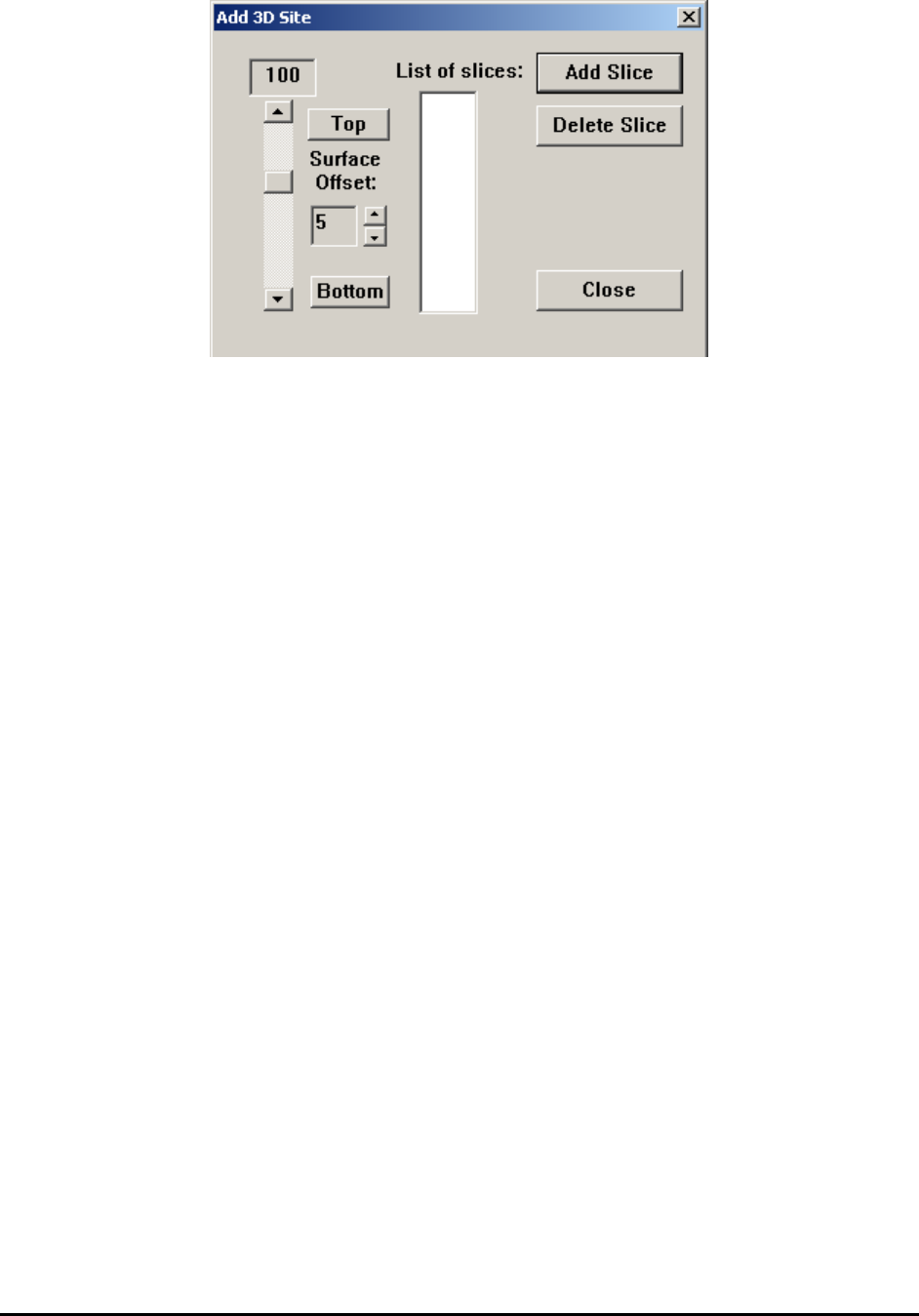 different level and don’t want to add current 3D site to list, use Add Slice dialog without adding