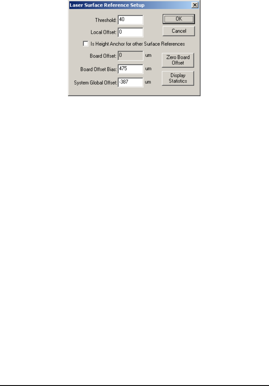 average height of these two points. Then open the Laser Surface Reference Setup dialog, click to