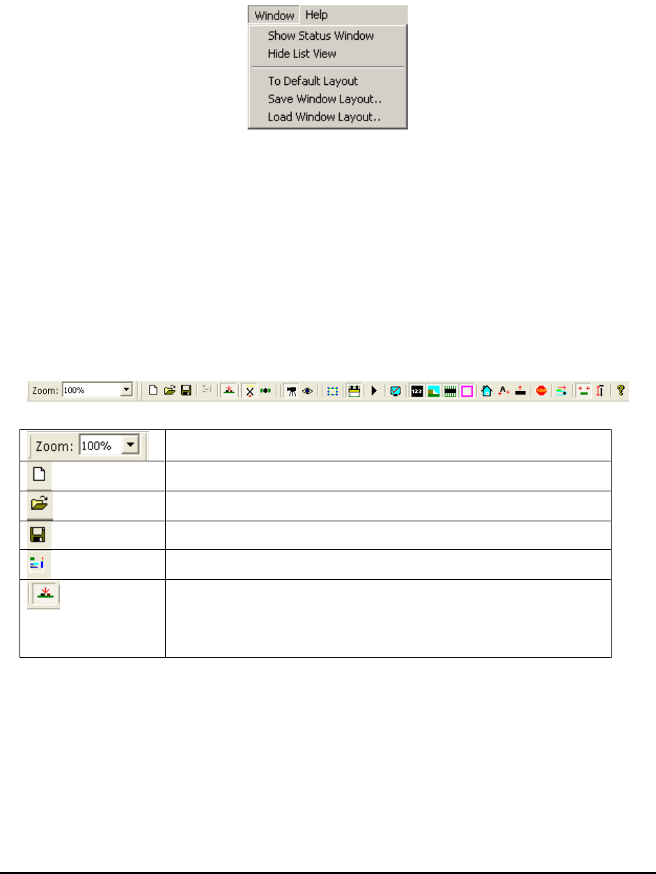 sections of this document. The sub-menu ToolBar and Window will be described here. The