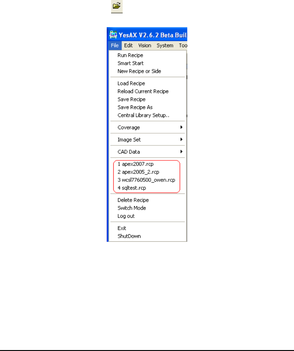 recipe, click the Load Recipe button or select it from the list of recently loaded recipes in the