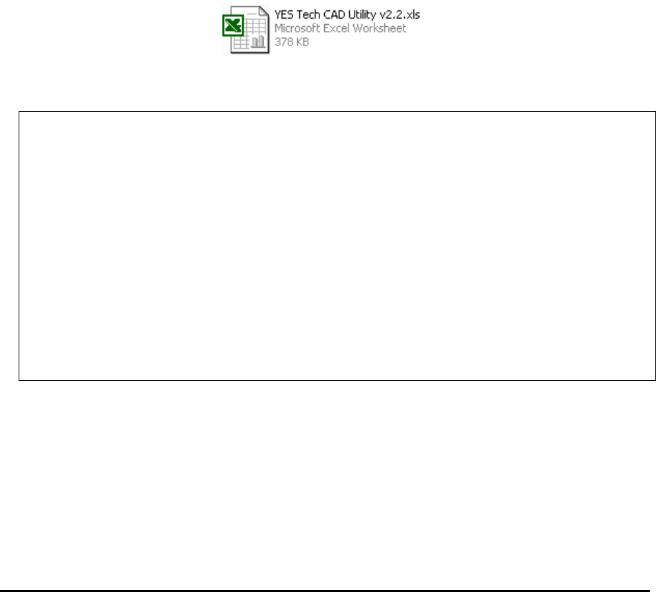 YESTECH Cad Data) before importing to the machine. Microsoft Excel can be used for the