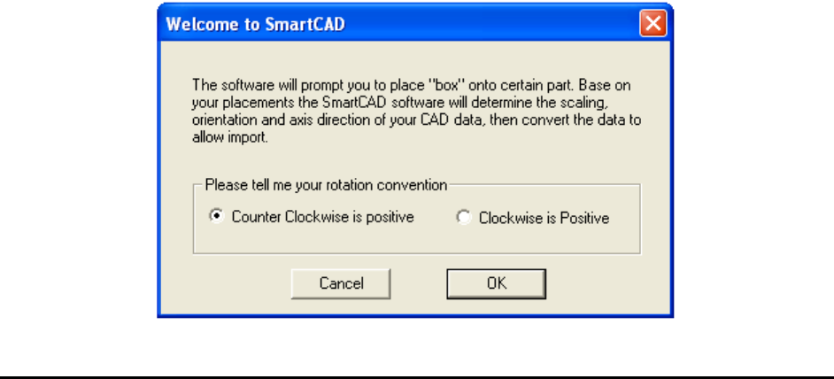 In the beginning of the CAD import process the Welcome to SmartCAD dialog displays