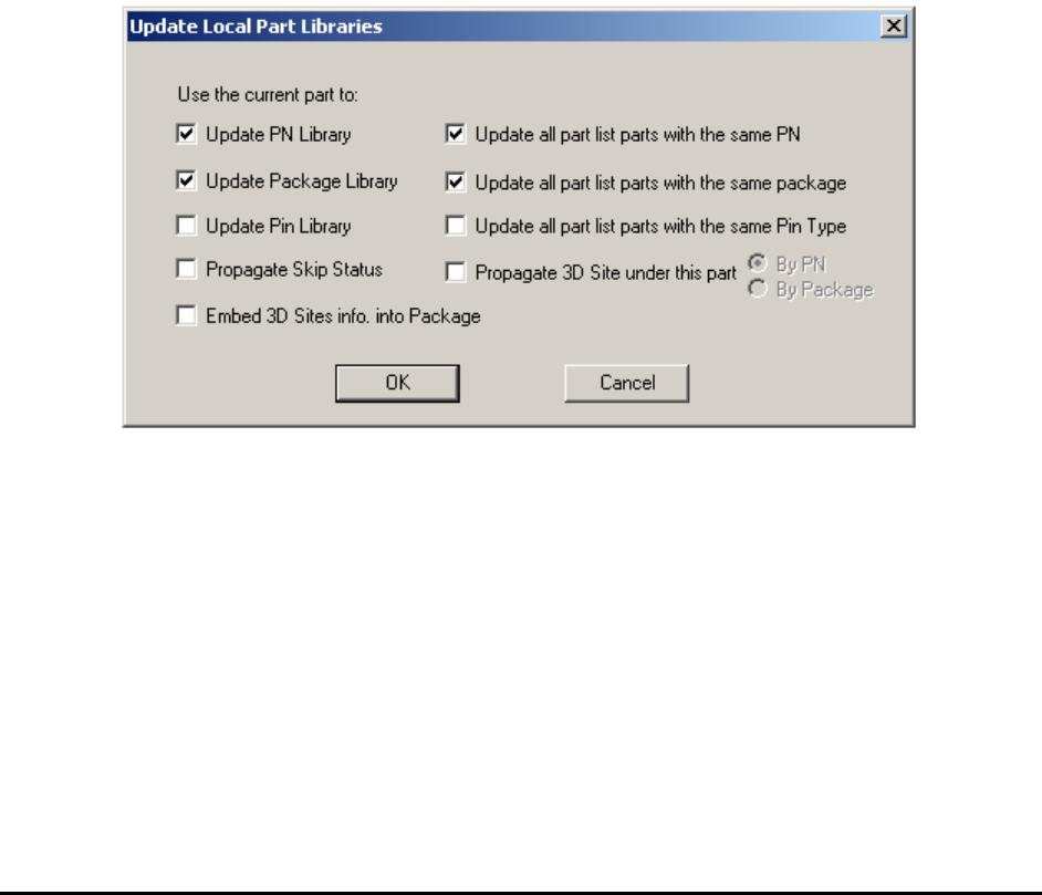 The Update Local Parts Libraries dialog allows you to update the part number, package or Pin