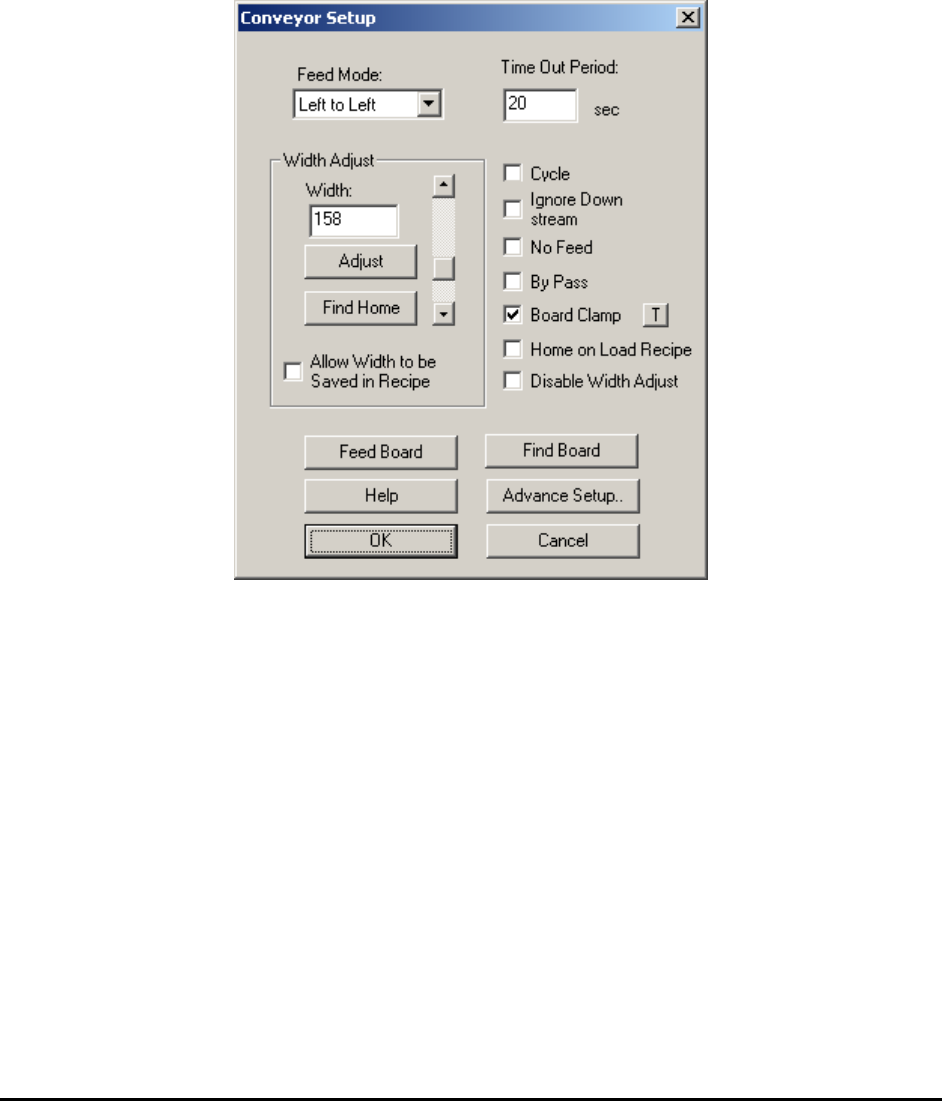 loaded. However, the software cannot adjust the width if there is a board on the conveyor during