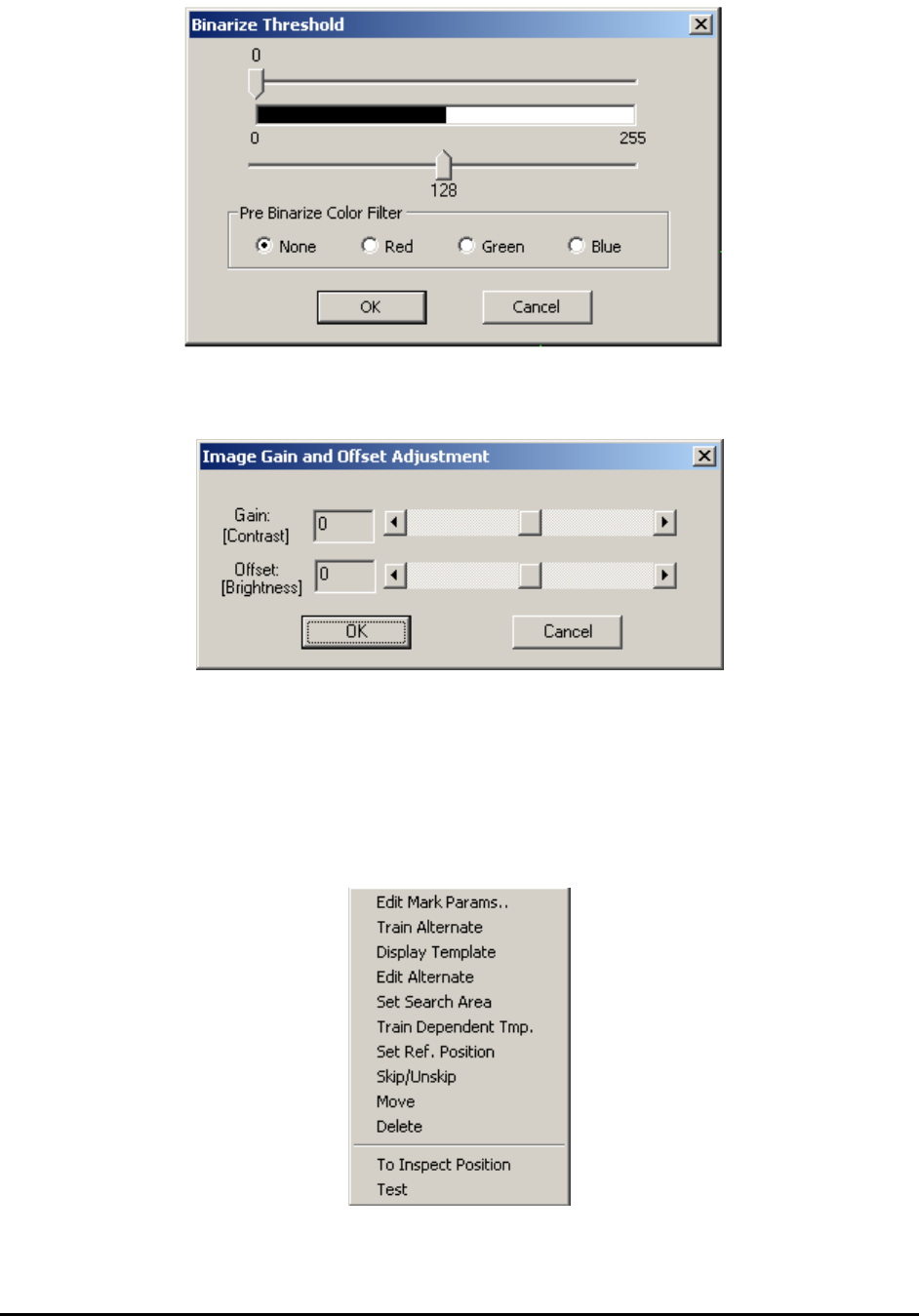10 -2 General Inspection Methodolog y The Gain Offset Enhancement algorithm has two adjustable parameters that can be set in the Image Gain and Offset Adjustment dialog. 10.2 Mark Inspection Mark inspection is designed t…