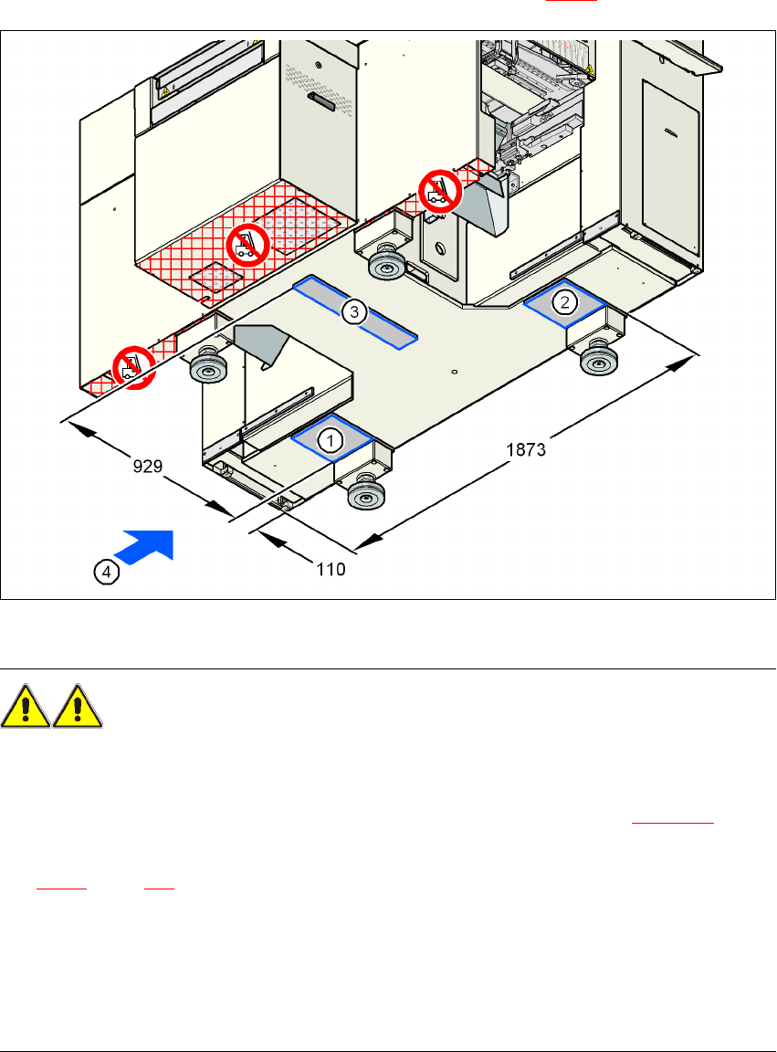 → Skjut in gaffeltruckens gaffel under automaten, som visas i bild 4.3 - 1.