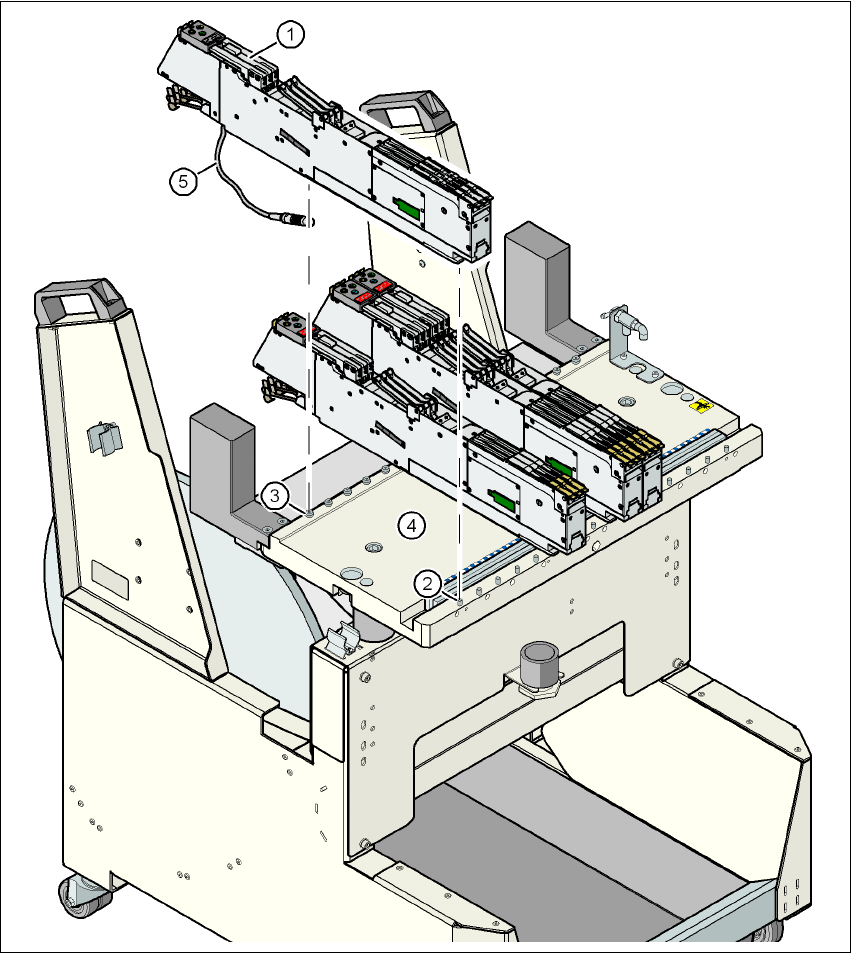 → Se till att mataren med sin bredd riktigt placeras på komponentbordet (se bild 5.6 - 2