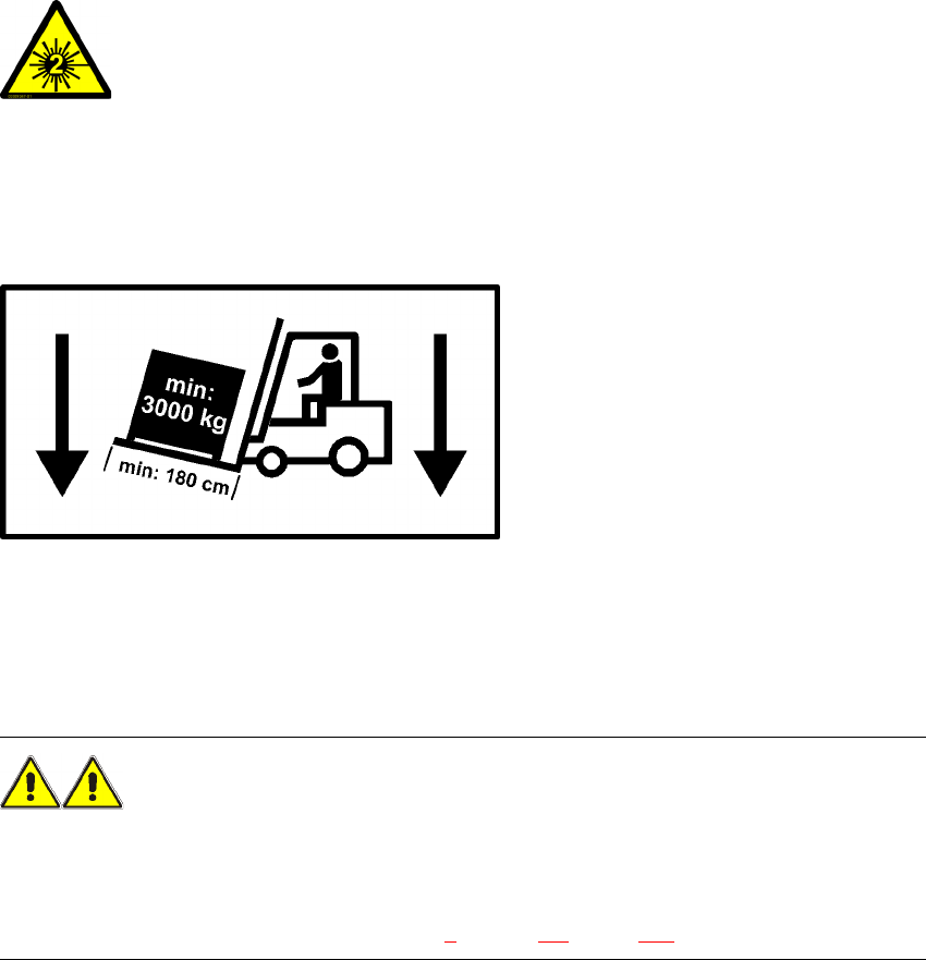 Använd för transport av automaten en gaffeltruck med följande specifikation: