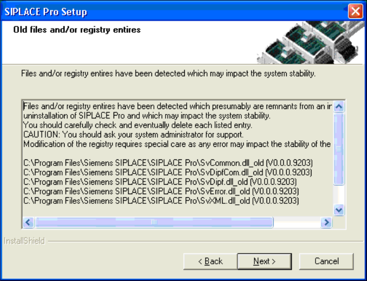 Abb. 7.2 - 4 Meldung von alten Dateien der vorangegangen Installation werden ignoriert