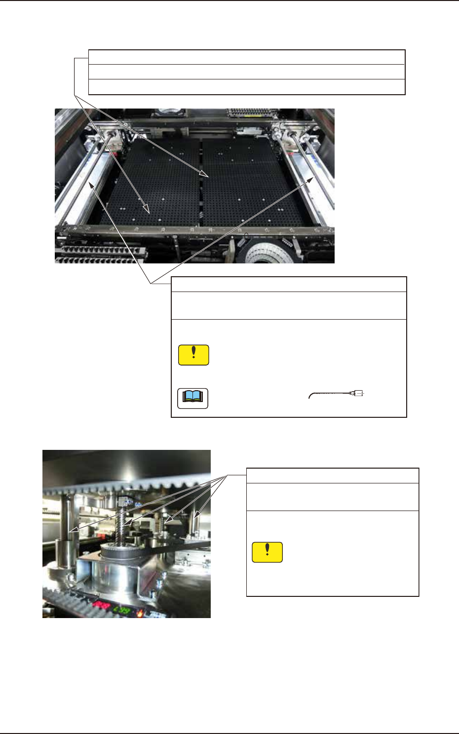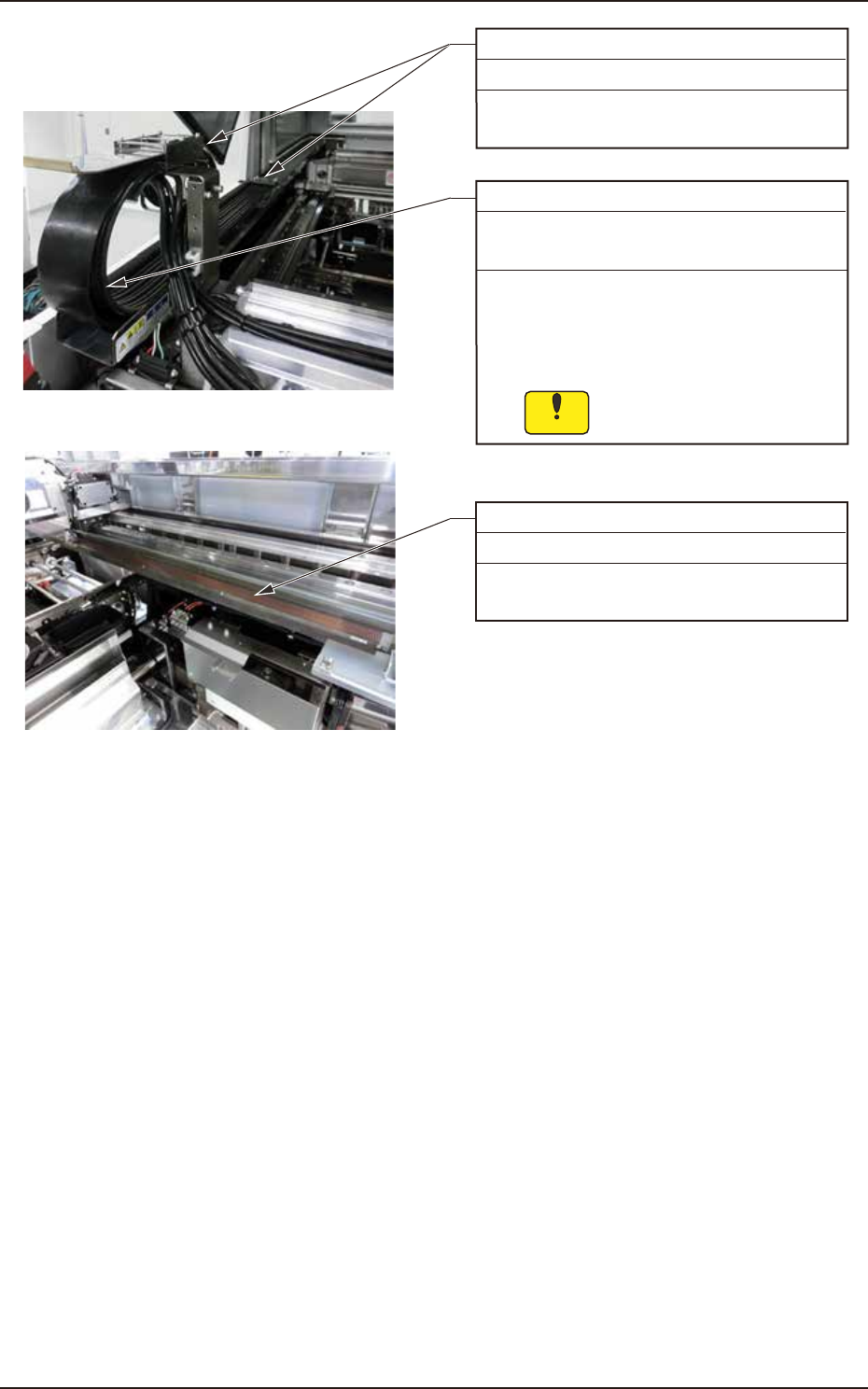 193-41 10 JUKYX 1-54 Y軸ケーブル固定か所(2か所) 6か月ごと 点検 所要時間:1分 亀裂などの異常がないか、目視で確認して ください。 Y軸ケーブル側面 6か月ごと 清掃、給油 所要時間:3分 (バリエルタIEL/V) (1) 油ウエスで古いグリースを拭き取って ください。 (2) 新しいグリースを手またはハケで塗布 してください。 糸くずなどを残さないように してください。 注 意 Y…
