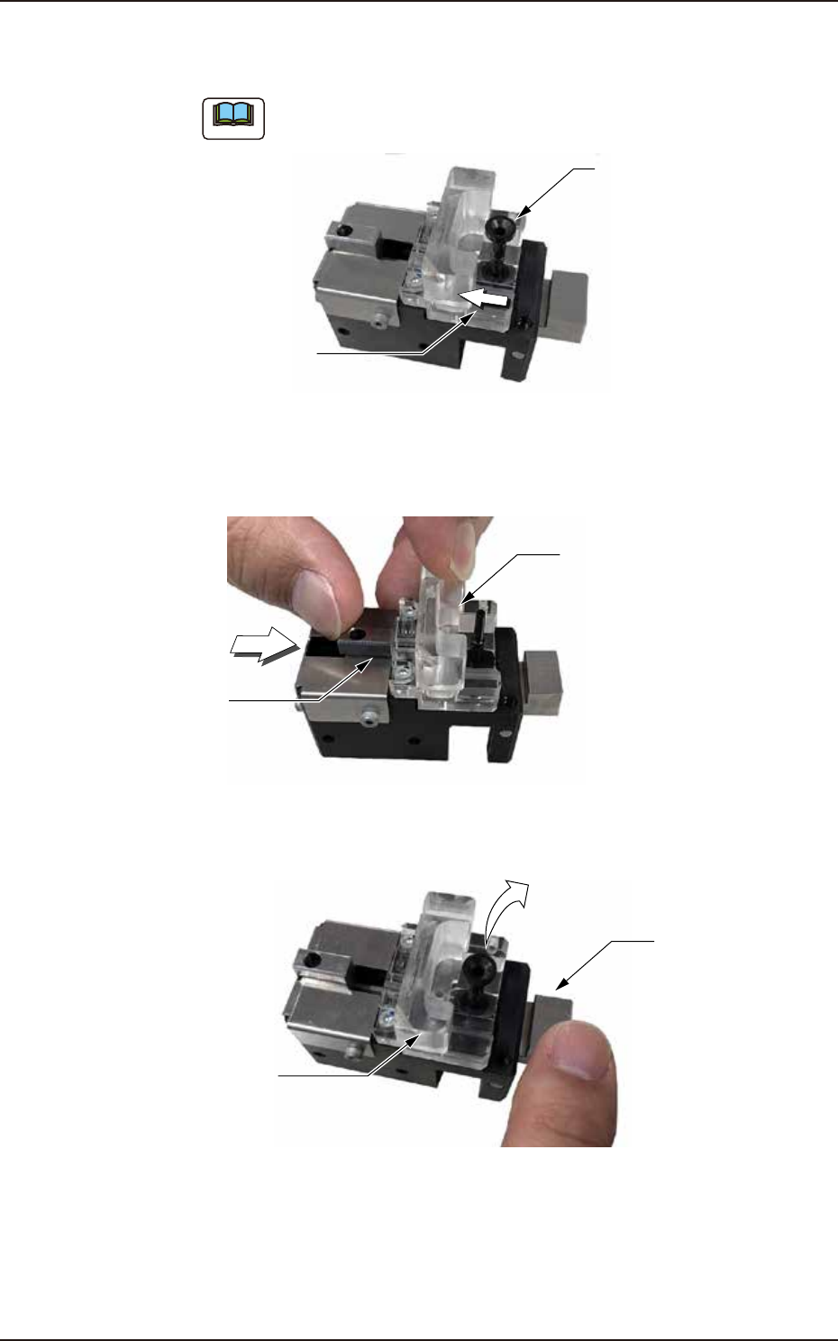 (4) アクリルブロックを抑えながらスライド部をスライドさせ、ノズル用