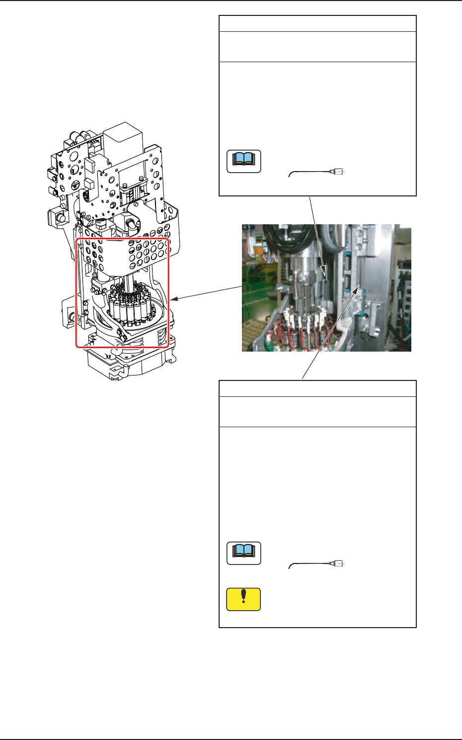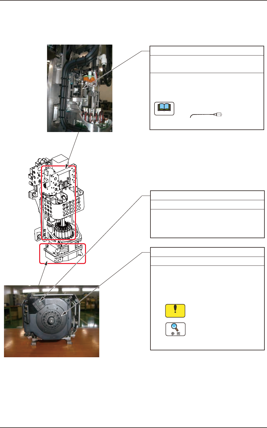 193-41 10 JUKYX 1-45 センサにグリースがつかないよう 注意しながらグリースを塗って ください。 注 意 ヘッド上下ボールネジ(HL軸) 3か月ごと 清掃、給油 所要時間:5分 (ダフニーグリースMP No.1) (1)ウエスで古いグリースを拭取って、 ボールネジの溝に新しいグリースを シリンジで少量塗ります。 使用するノズルはNo.19(茶)です。 No.19 ノート (2)給油後、HL軸を手動操…