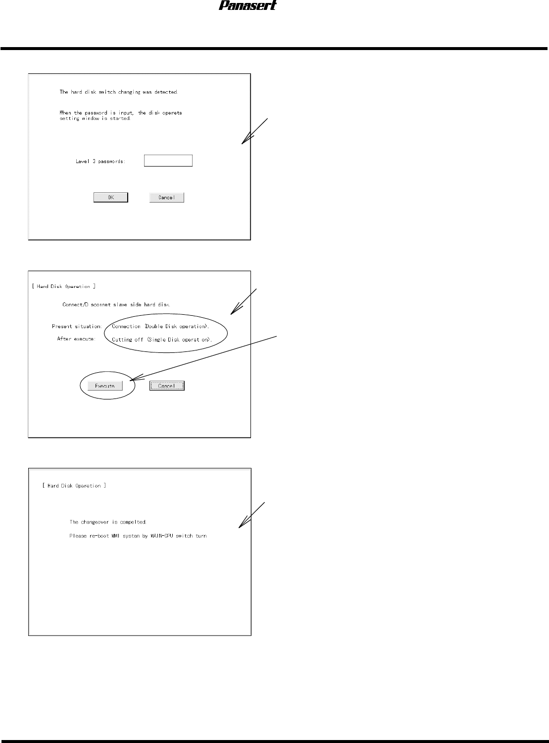 MSR 服务手册 5.4 NT 与 MMI 的安装步骤 D 1 4 S C C - 8 4 - 0 1 0 - A 0 5 . 4 - 2 2 5.4.10 主体侧( 主体侧( 主体侧( 主体侧( HDD1 )→预备侧( )→预备侧( )→预备侧( )→预备侧( HDD2 )的切换 )的切换 )的切换 )的切换 关闭 机器主体 电 源 重新安装 时 ,不 显 示 2 台 应 用 → 1 台 应 用 的切 换 画面。 开 始操作 显 示 …