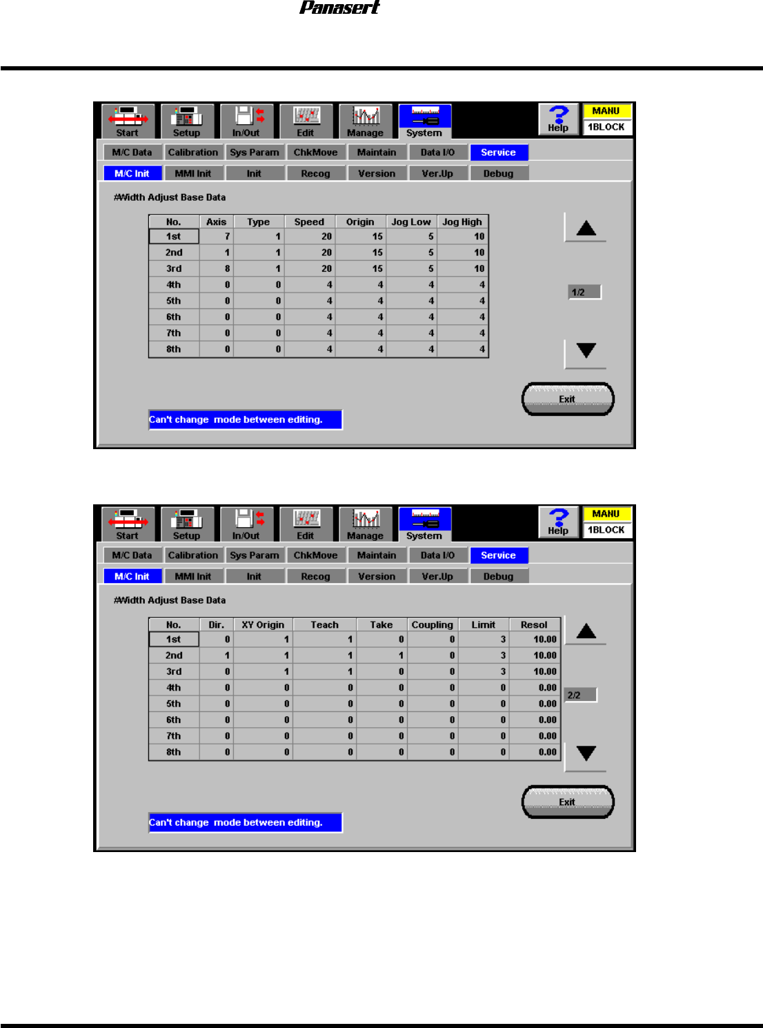 进行第 1~8 轴的宽度调整基本数据的设定。