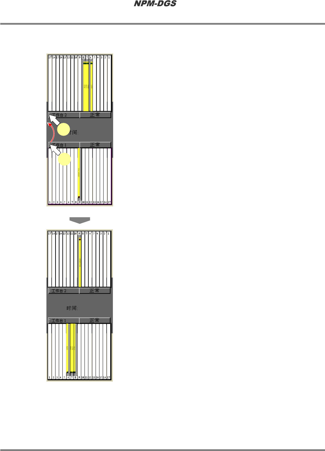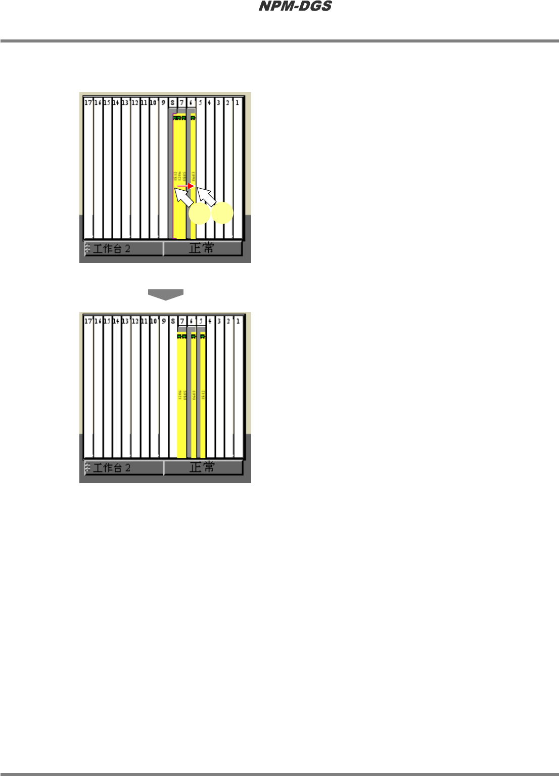程序手册 7.4 供料器装配画面 Page 7-110 EJS9AC-MB-07P-20 n 工作台的交换 1 选择交换对象的工作台编号。 2 在选择状态下, 拖放到交换目标的工作 台上。 · 交换工作台。 * 无法交换被固定住的元 件。需要交换时,请解 除固定。 Product070300S-14C00 Product070300S-13C00 1 2