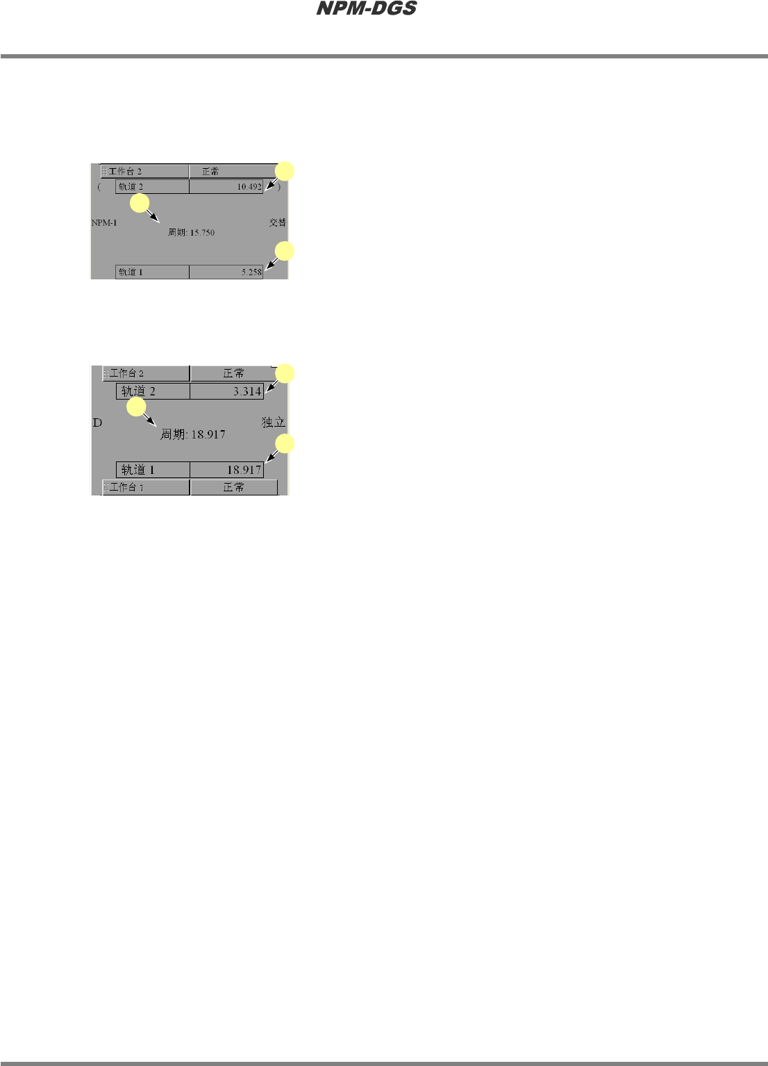 显示各轨道的周期时间。
