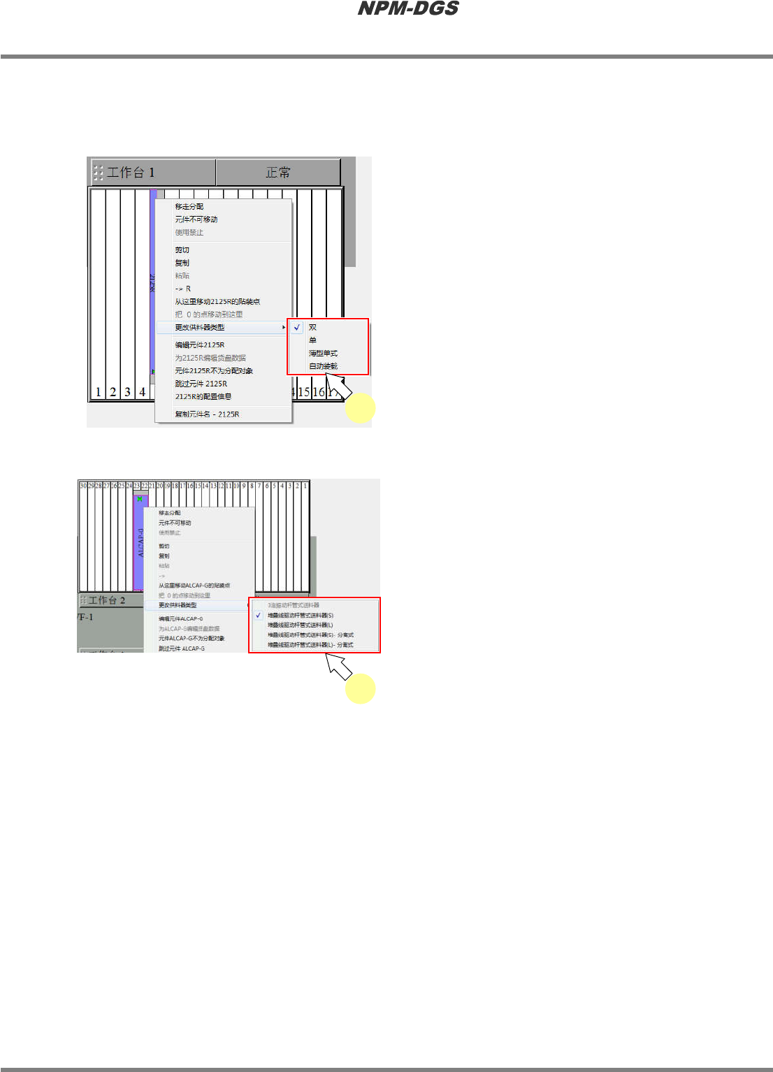 在想要更改供料器类型的元件上右击,