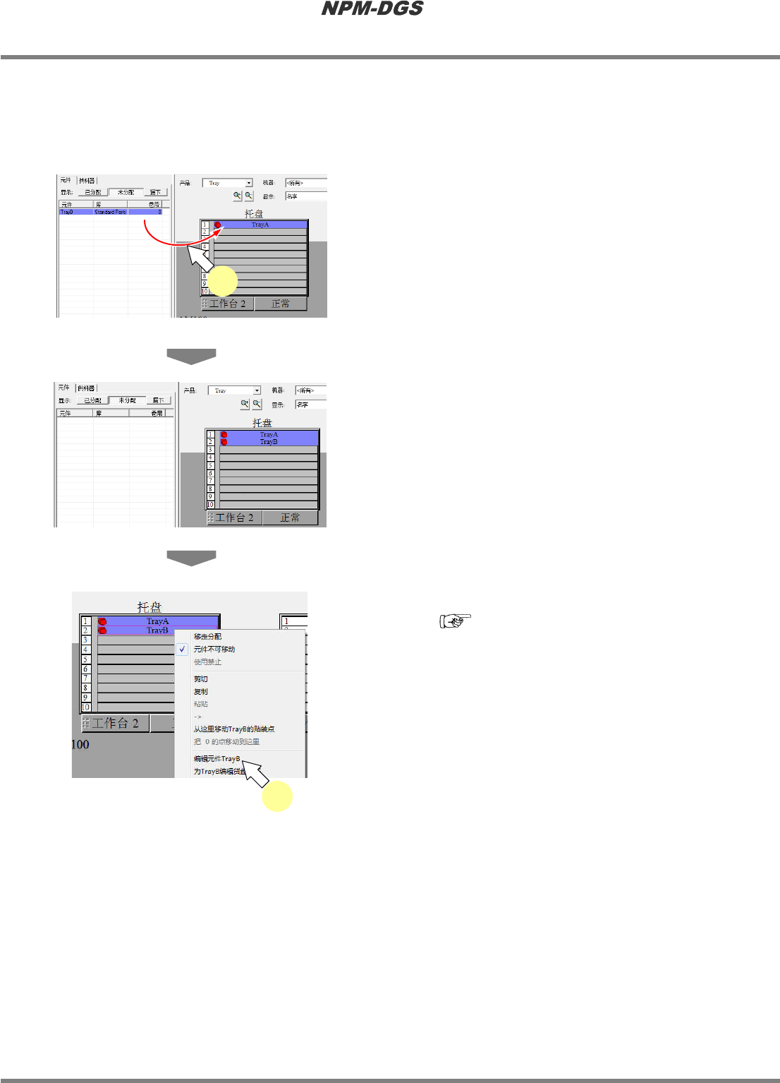 对配置了元件的托盘板数据进行编辑。