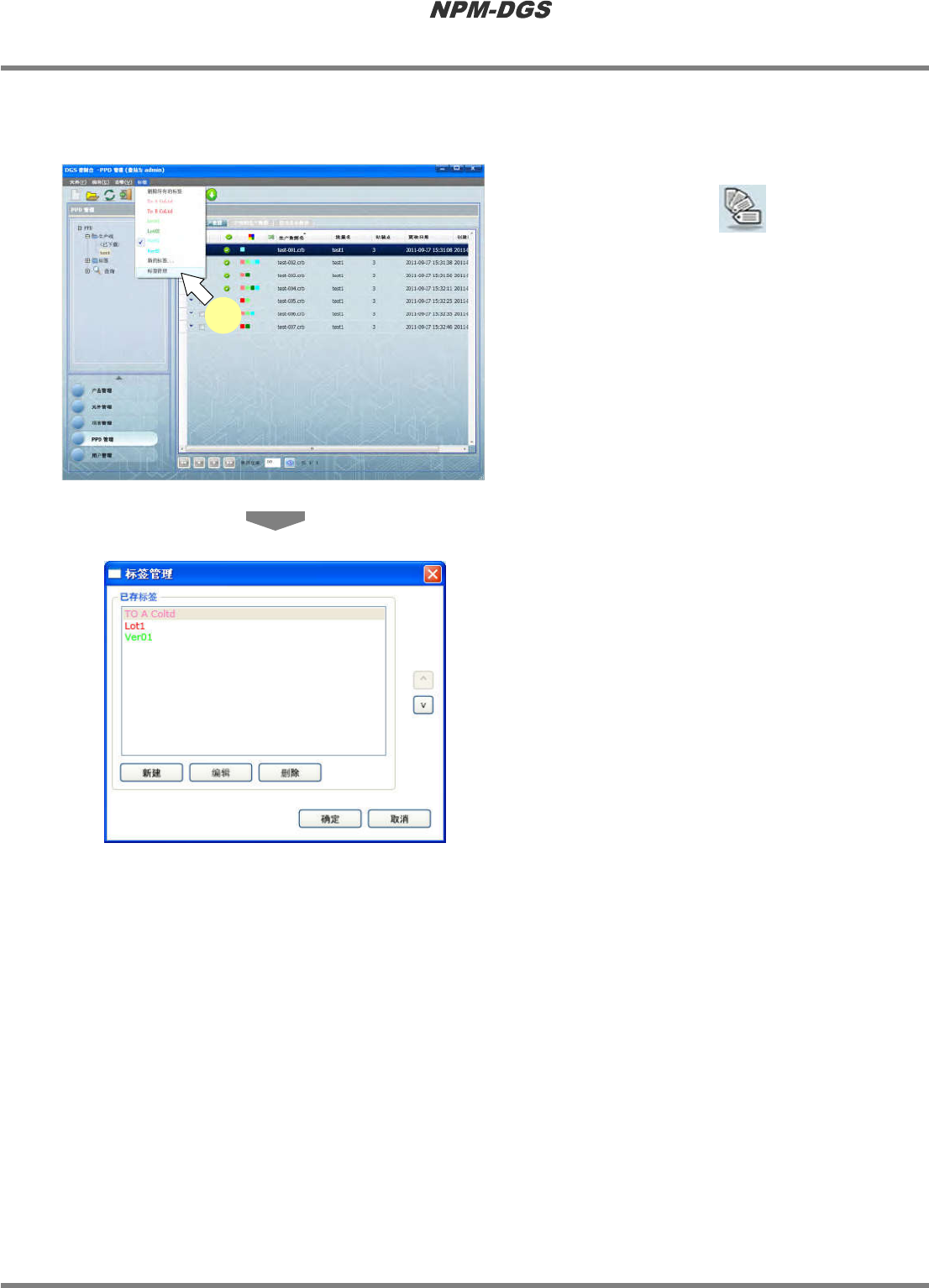 追加、删除、编辑标签。