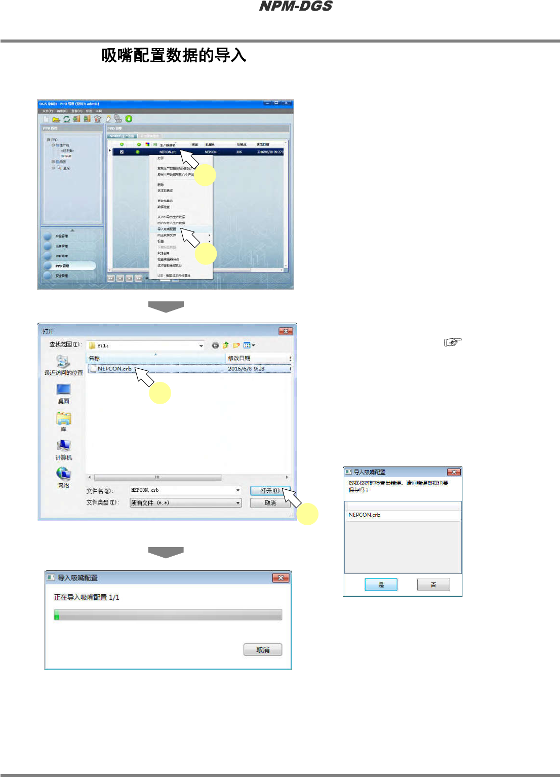 不导入发生数据确认错误的吸嘴配