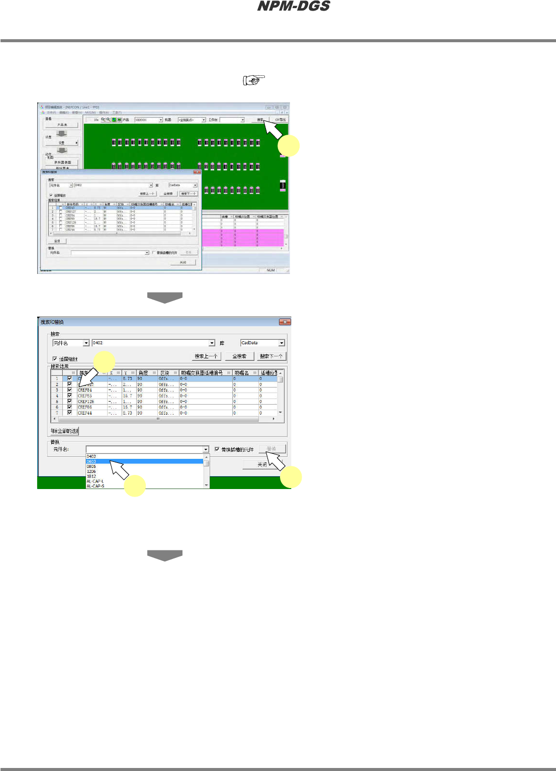 程序手册 9.4 关于项目编辑系统画面 Page 9-114 EJS9AC-MB-09P-14 5 点击 [ 是 ] 。 · 当选择了所选元件库内 的元件时,将显示左侧 画面。 * 输入元件名后替换时, 将显示下述画面。 · 将会在基板信息上显示 替换后的元件。 PPD090505S-0 8C03 PPD090505S-0 9C00 5 PPD090505S-10C00