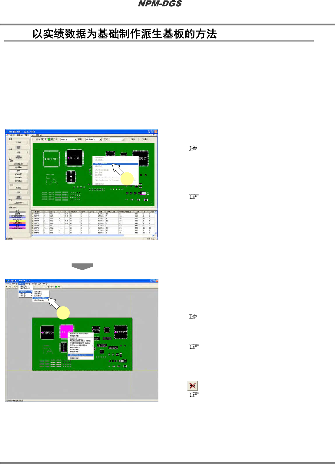 制作与已完成的实绩生产数据和贴装坐标或元件相似的派生基板的生产数据,除了在