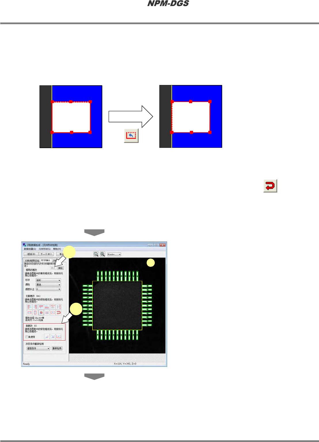 电极移动主体尺寸的一半以上距离时或者进行拷贝时不进行电极方向的设定。(四边实线)