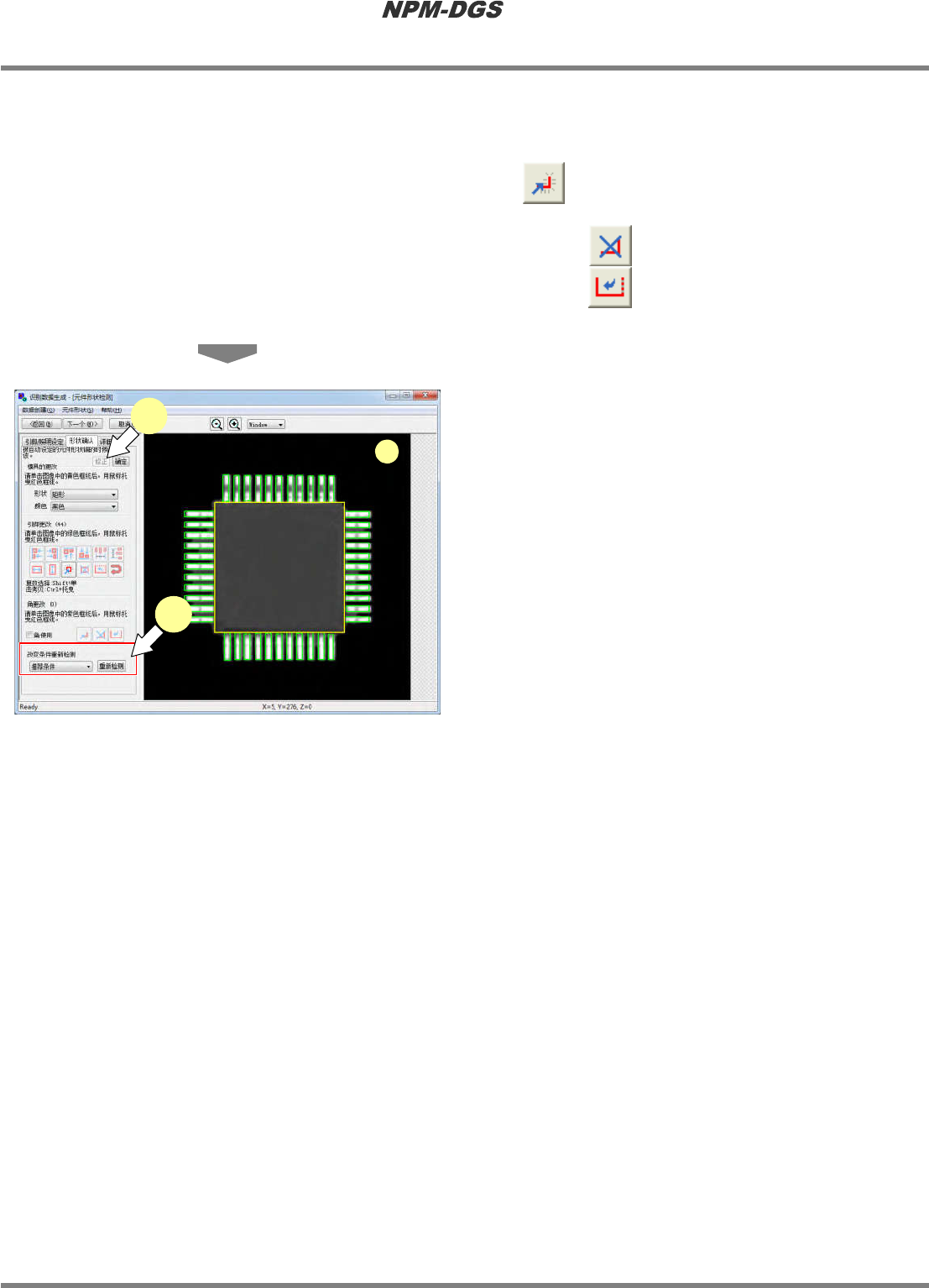 程 序手册 11.4 用扫描设 备制作识别选 项数据的详情 EJS9AC -MB-11P-0 8 Page 11 -19 n 更改电极的方向。 通过自动检测能 辨别电极方向 时,用 虚线显示电极 的根部。未能 通过自动 检测辨别电 极方向 时,请选 择菜 单的 [ 元件形状 ] ® [ 引线更改 ] ® [ 电极方向 更改 ] ,或者点击 [ 电 极方向更改 ] ,或 者用鼠标双击 根部框线,以 修正到正确方向 。 * 电极 移动主 体…