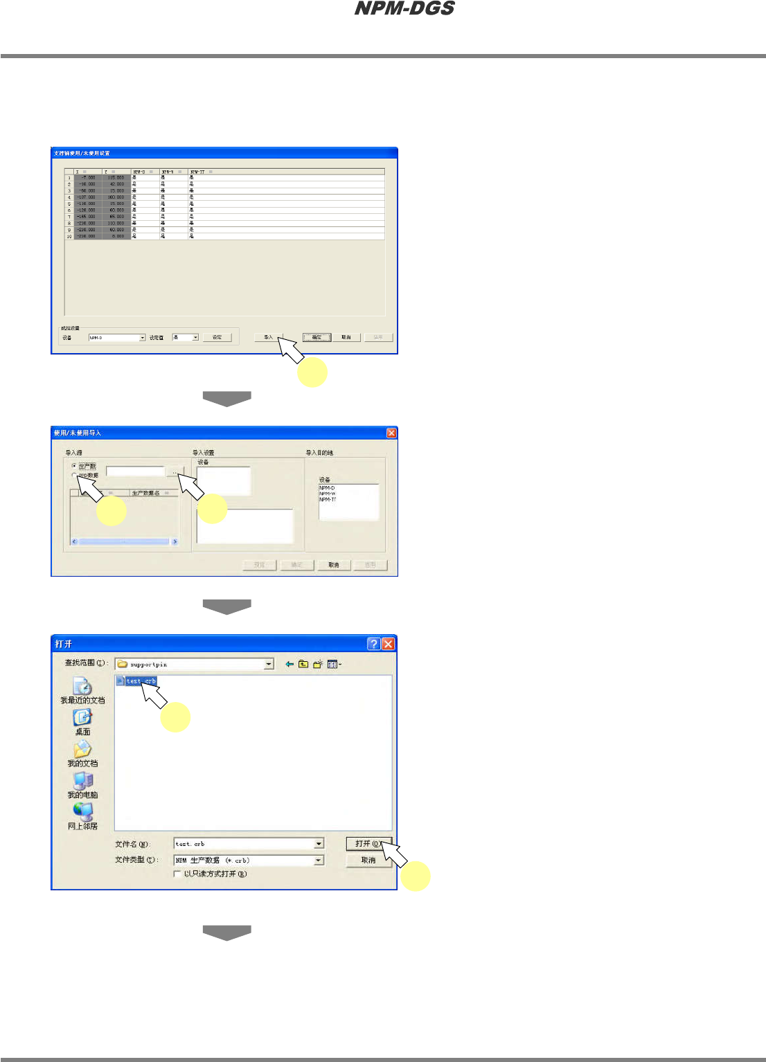 将在导入的设定画面上,显示包含在生产数据