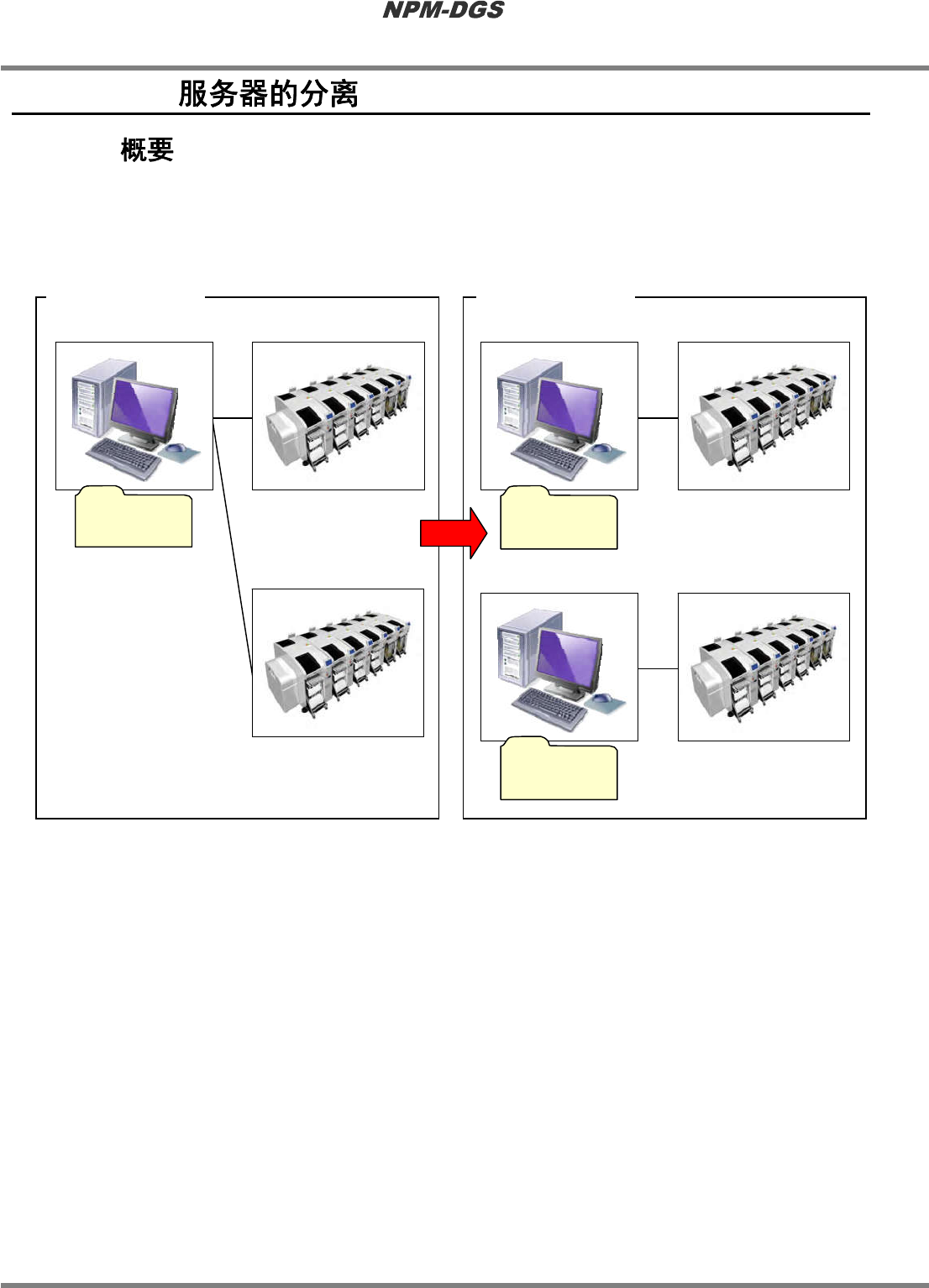 程序手册 13.9 DGS 服务器的分离 Page 13-116 EJS9AC-MB-13P-19 13.9 DGS 13.9.1 在通过以一台 DGS 服务器对数据进行 管理之际, 当发生需要移动生产线的情形时, 将难以进行管 理。在类似情形下,将 DGS 服务器分离成 2 台,即可解决问题 。 n 服务器分离的示意图 服务器分离后 DGS-1 : 分离后的服务器 DGS-1 的管理线 DGS-1 数据 DGS-2 : 新服务器 旧 …