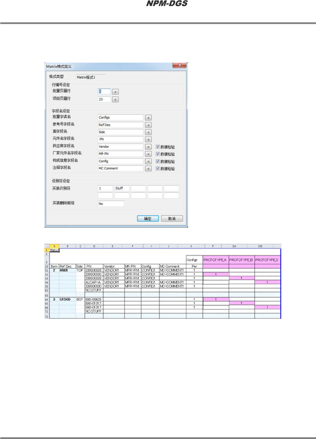 程序手册 13.11 试作基板数据的生成 EJS9AC-MB-13P-19 Page 13- 129 n Ma trix 格式的定义画面 在试作基板数据的生成画面上, 按下 Matrix 数据的 [ 格式定义 ...] 按钮, 将在显 示 Matrix 格式的定义 画面的同时启动对象 Matrix 数据的 Excel 。 同时启动的 Martrix 数据的 Excel( 样品例 ) HowTo131106S-05C00 HowTo131…