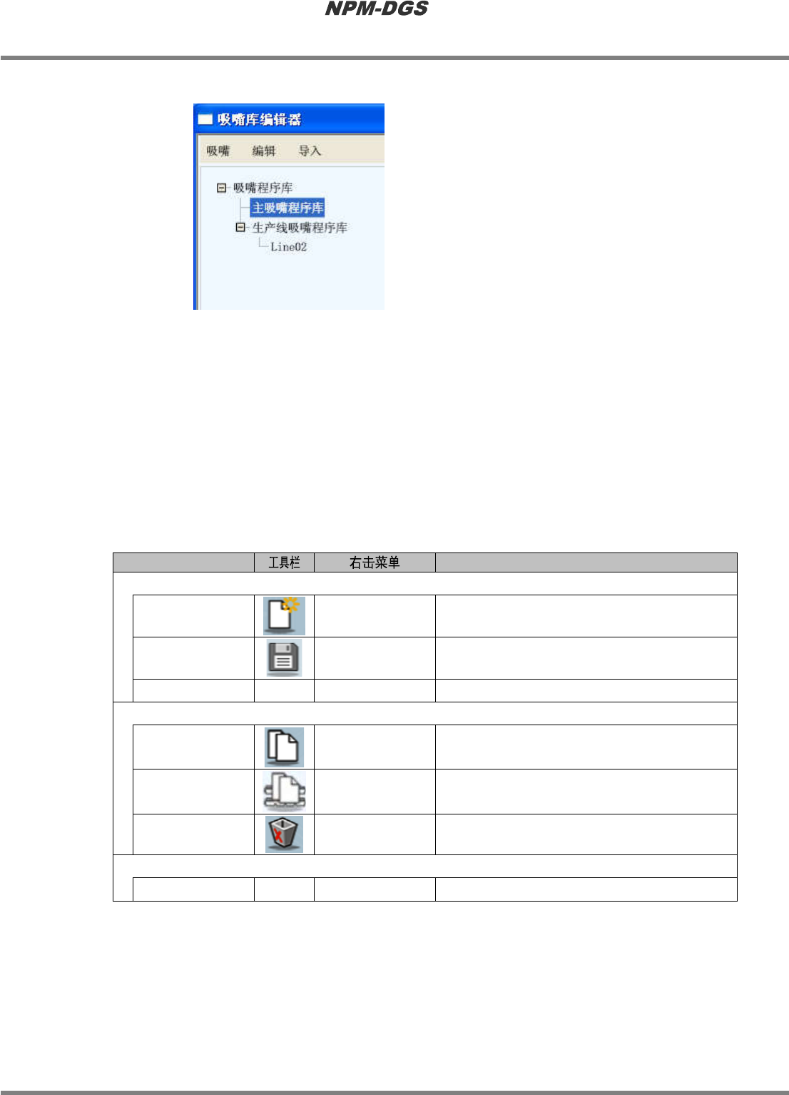 关于吸嘴库的树菜单显示区域