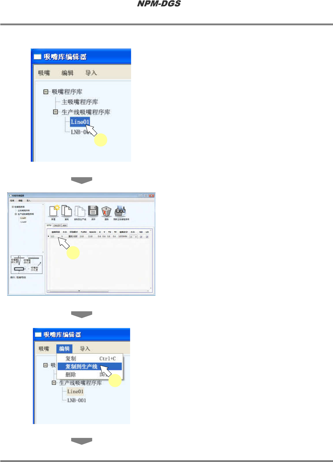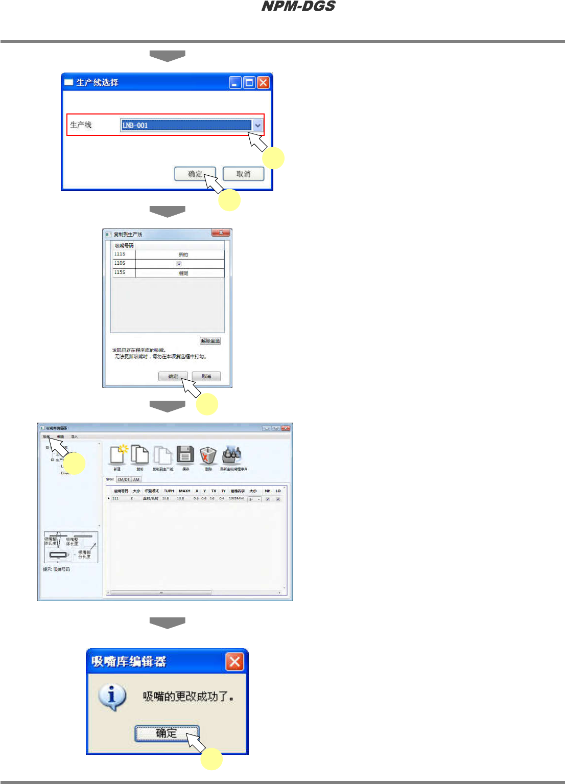 选择吸嘴程序库内的生产线吸嘴程序