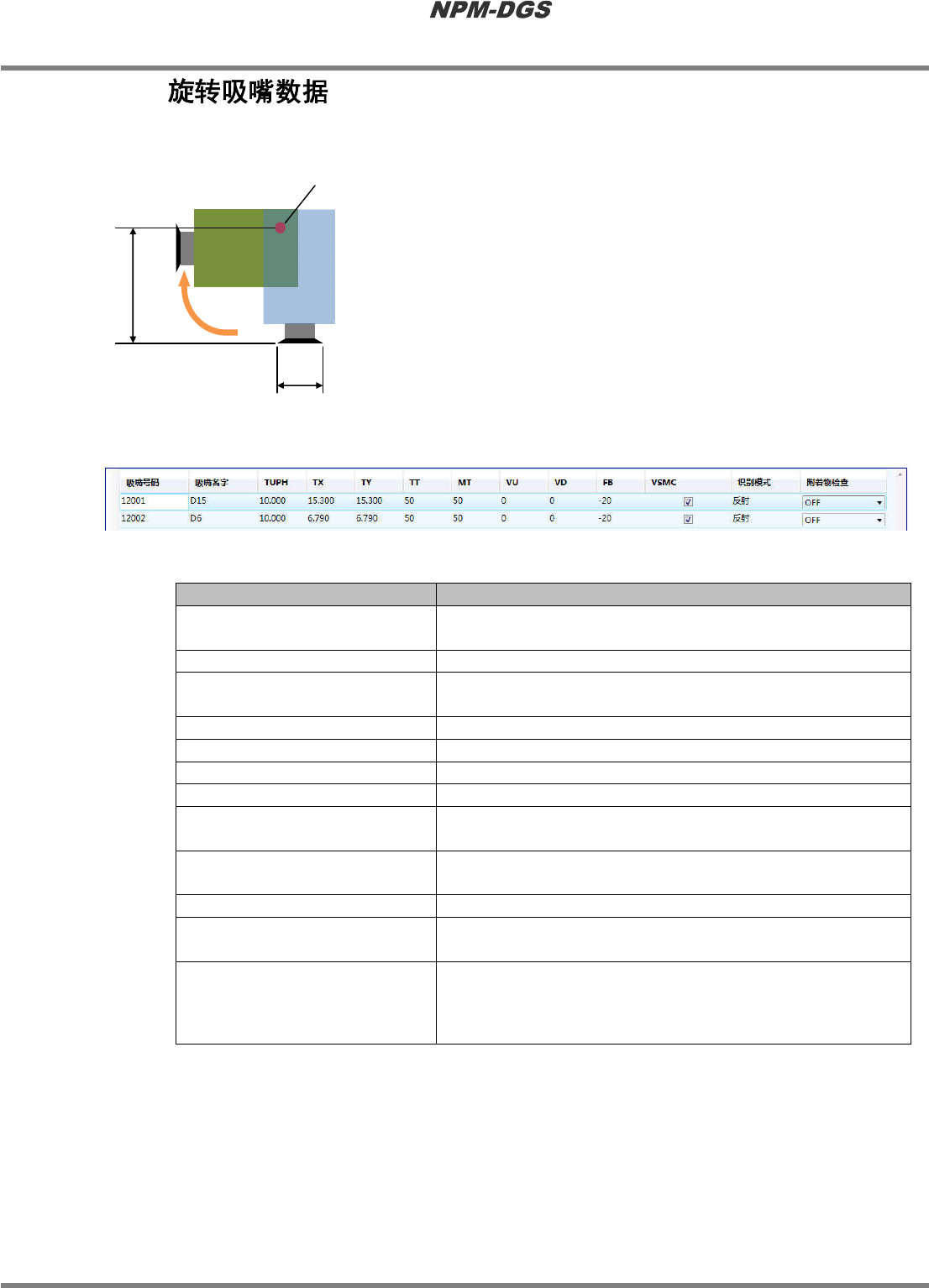 在这里对旋转吸嘴数据的详细内容进行说明。
