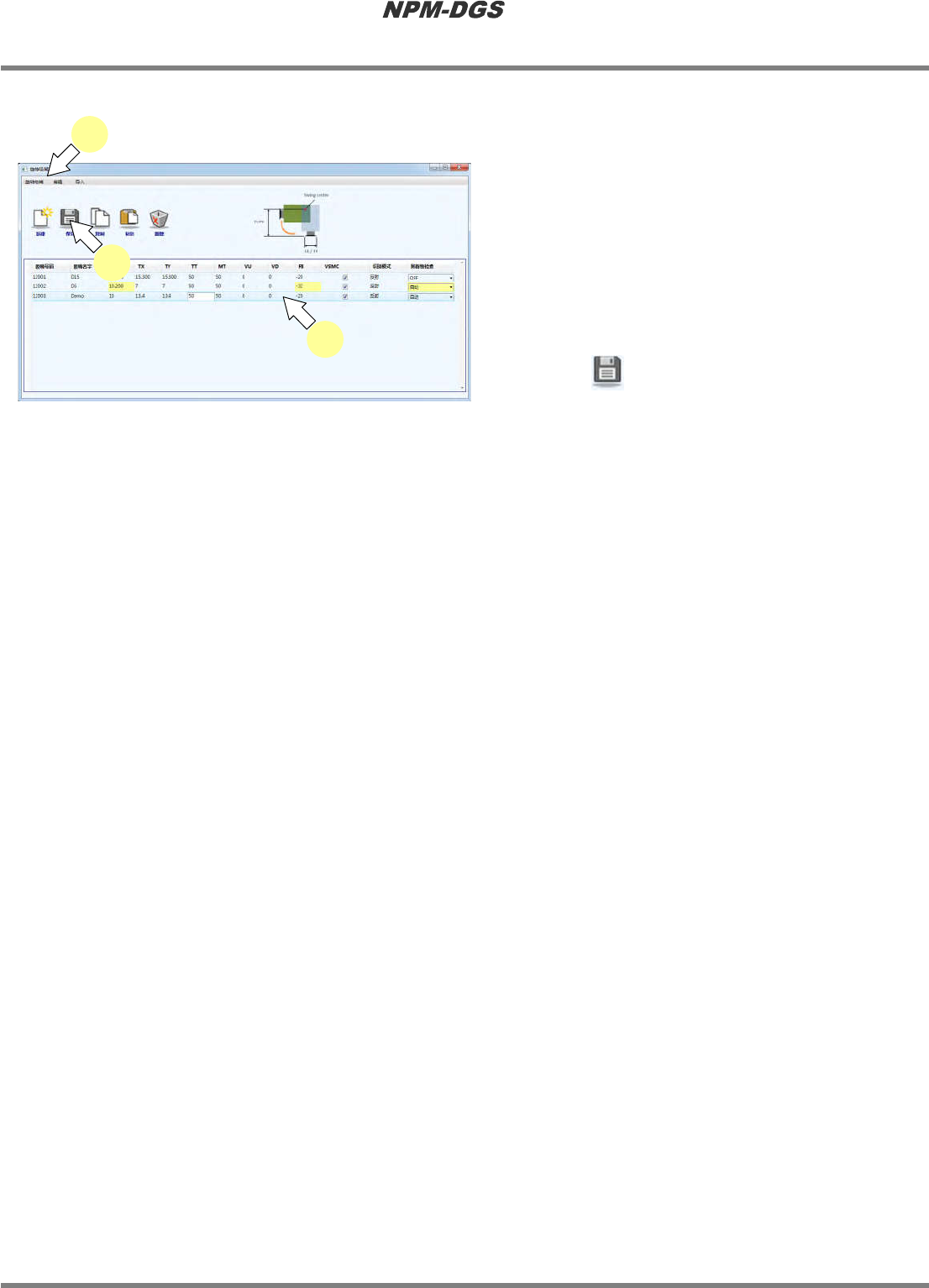 程序手册 4.10 旋转吸嘴库编辑器 Page 4-108 EJS9AC-MB-04P-21 n 旋转吸嘴数据的变更 1 点击需要变更项目的单元格后, 变更数 据。 · 如果变更标准旋转吸嘴 数据,变更的单元格背 景将发生变化。新建追 加了旋转吸嘴时,背景 颜色将不发生变化。 2 点击菜单栏的 [ 旋转吸嘴 ] → [ 保存 ] ,或 者点击 。 Factory041200S-07C00 1 2 2