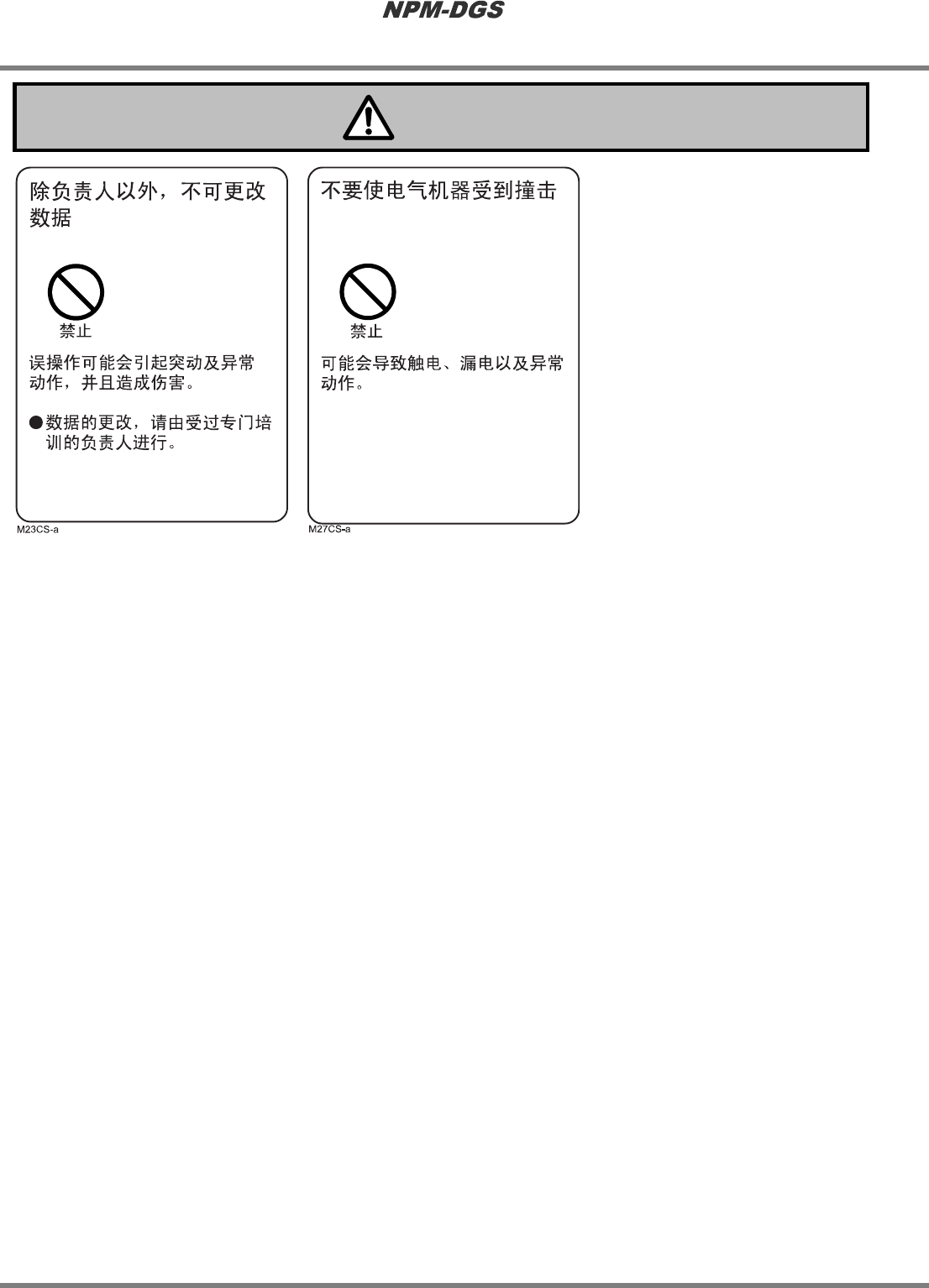 安全注意事项 EJS9AC-SF-01N-00 Page S-3 警告 接受专门培训后再操作设备 误操作有可能会导致受伤 。 ● 有关培训是否在贵公司进行,请与 敝公 司商洽 。