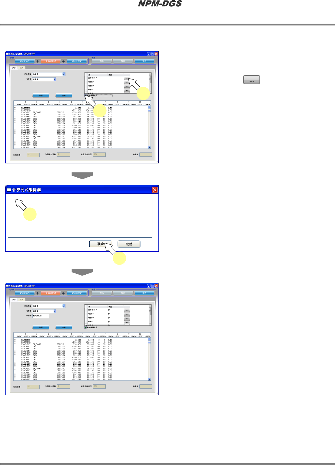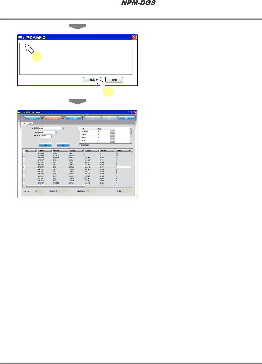 程序手册 5.2 CAD 宏的定义 Page 5-42 EJS9AC-MB-05P-20 n 使用位置指定 CAD 文件时的式的设定方法 1 在 ‘ 高级字段定义 ’ 中打勾。 2 点击各栏目中的 。 · 显示出编辑画面。 3 进行式的编辑。 4 点击 [ 确定 ] 。 · 式将被设定。 Project050201S-32C00 Project050201S-29C00 1 2 Project050201S-31C00 3 4