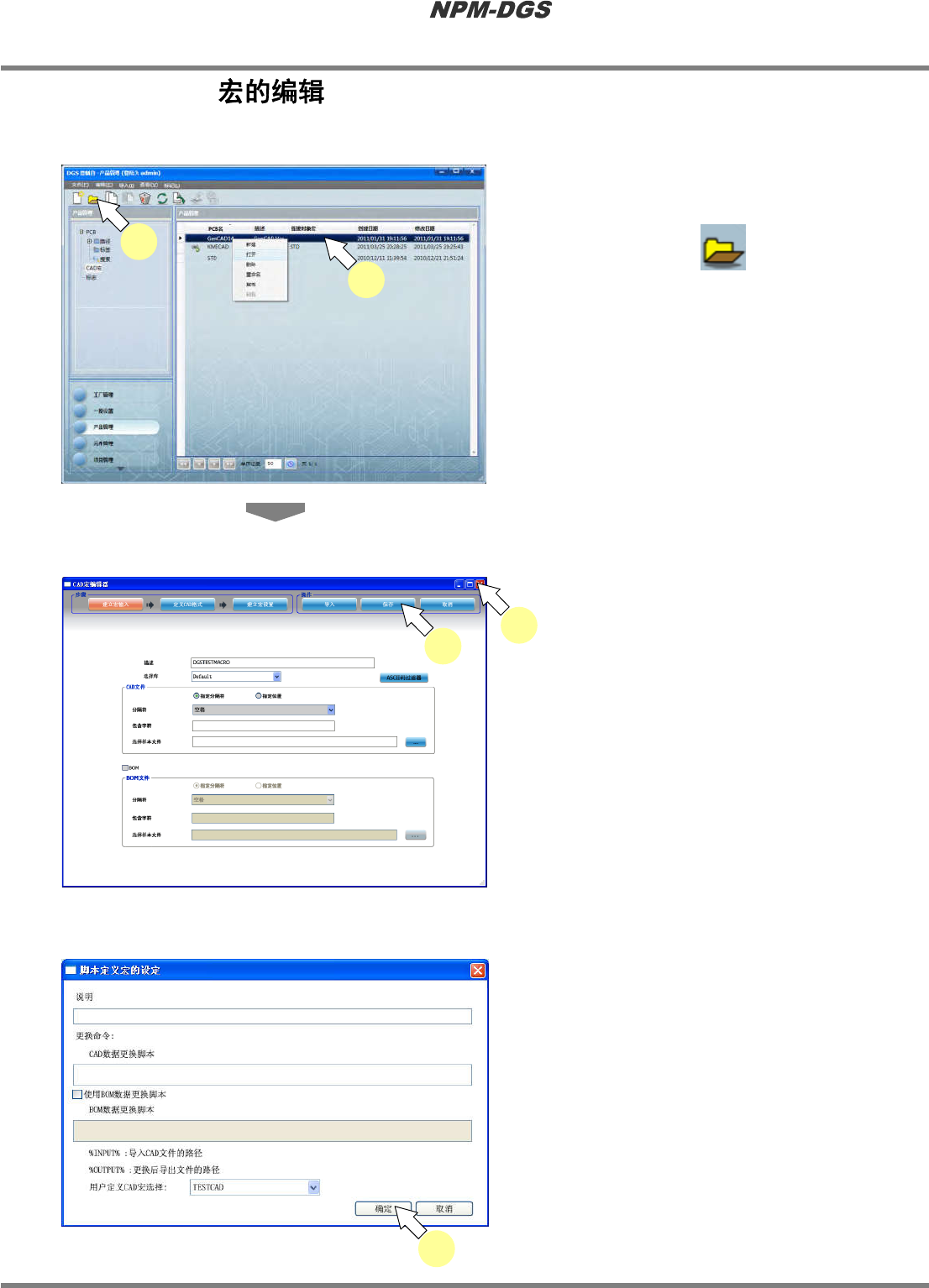 程序手册 5.2 CAD 宏的定义 Page 5-82 EJS9AC-MB-05P-20 纪录种类 纪录种类文字 字段编号 说明 衬垫 Pad 1 纪录种类文字 2 X 坐标 3 Y 坐标 4 X 方向尺寸 5 Y 方向尺寸 6 贴装面 7 基准编号 8 图层 9 网络 ID 10 形状 11 识别必要 12 旋转 孔 Hole 1 纪录种类文字 2 X 坐标 3 Y 坐标 4 X 方向尺寸 5 Y 方向尺寸 6 贴装面 7 基准编号 …