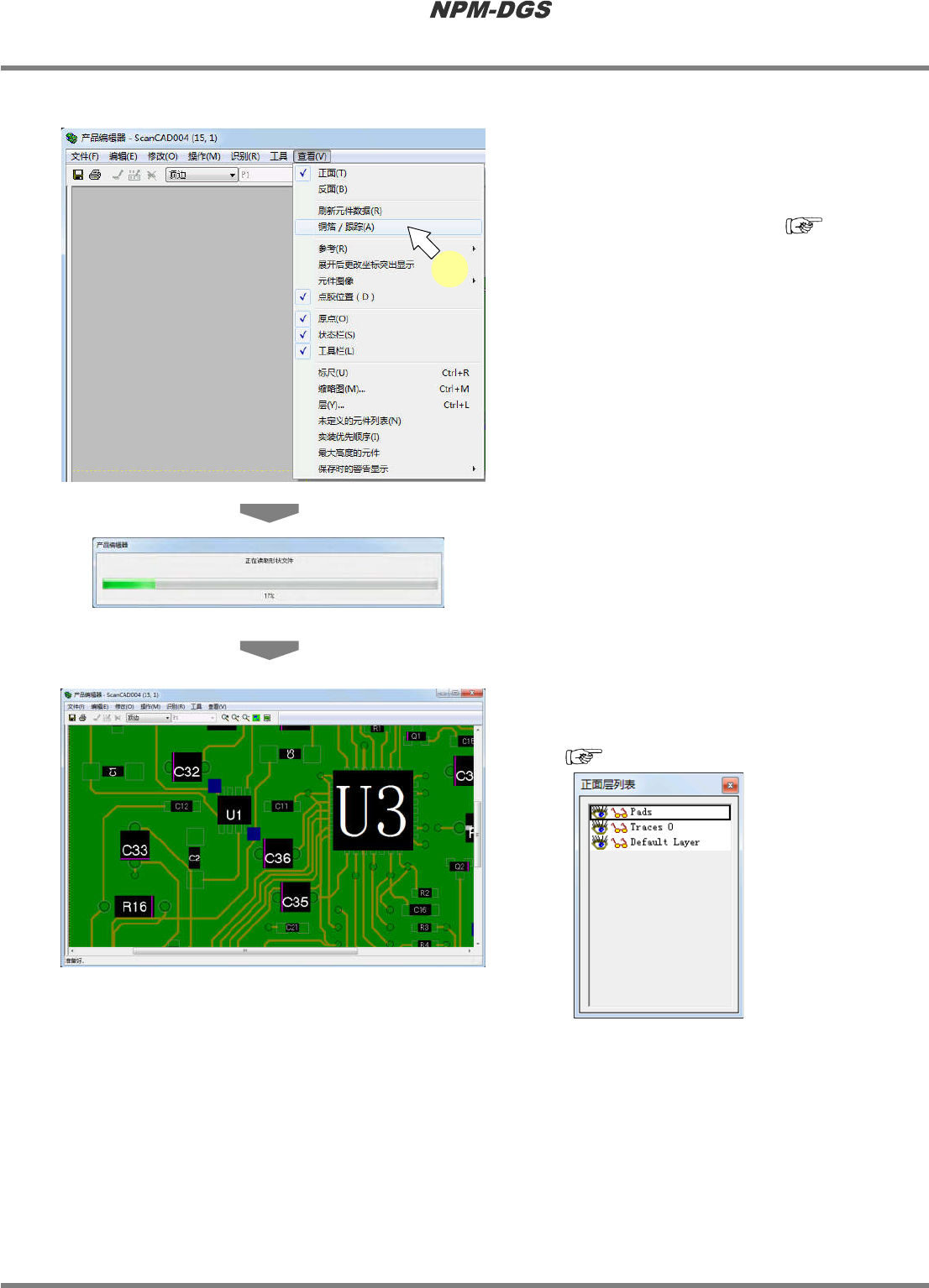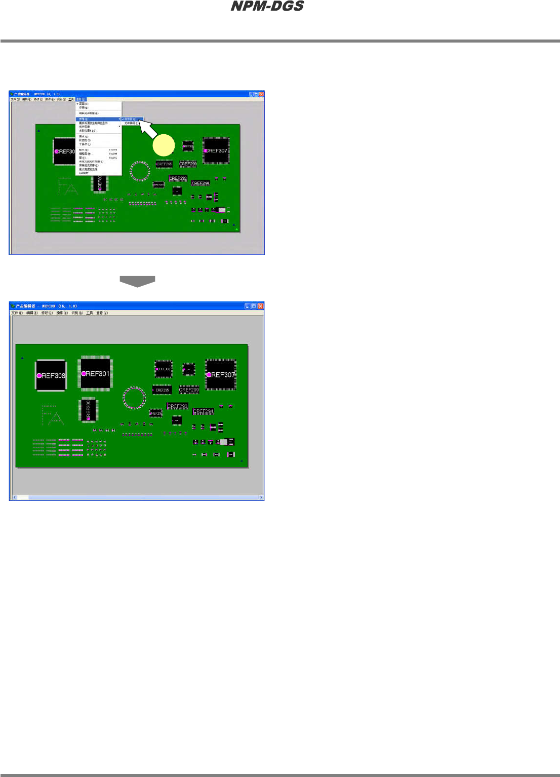 程序手册 5.8 PCB 编辑 Page 5-226 EJS9AC-MB-05P-20 n 参考的显示 1 选择菜单栏的 [ 查看 ] ® [ 参考 ] ,然后选 择附加到元件图像中的 ( 参考 / 元件 ) 编号。 · 在元件图像里显示出所 选择的 ( 参考 / 元件 ) 编 号。 Project050802S-98C03 1 Project050802S-99C02