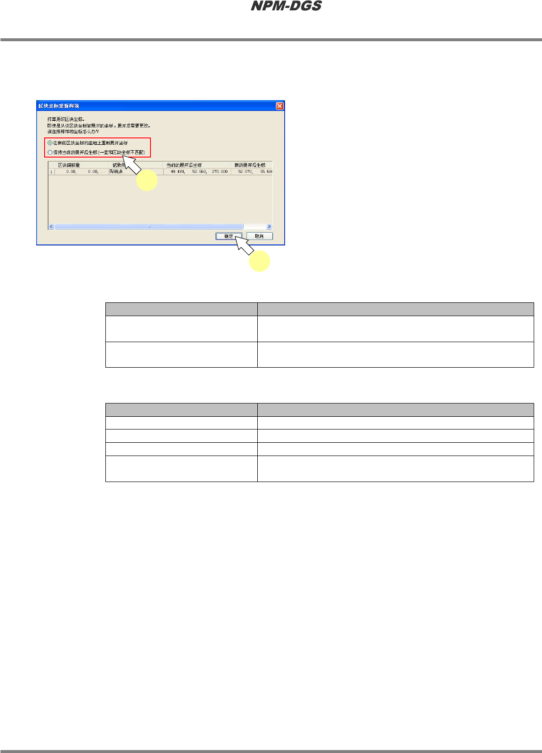 显示项目以及按钮动作与区块坐标选项相同。