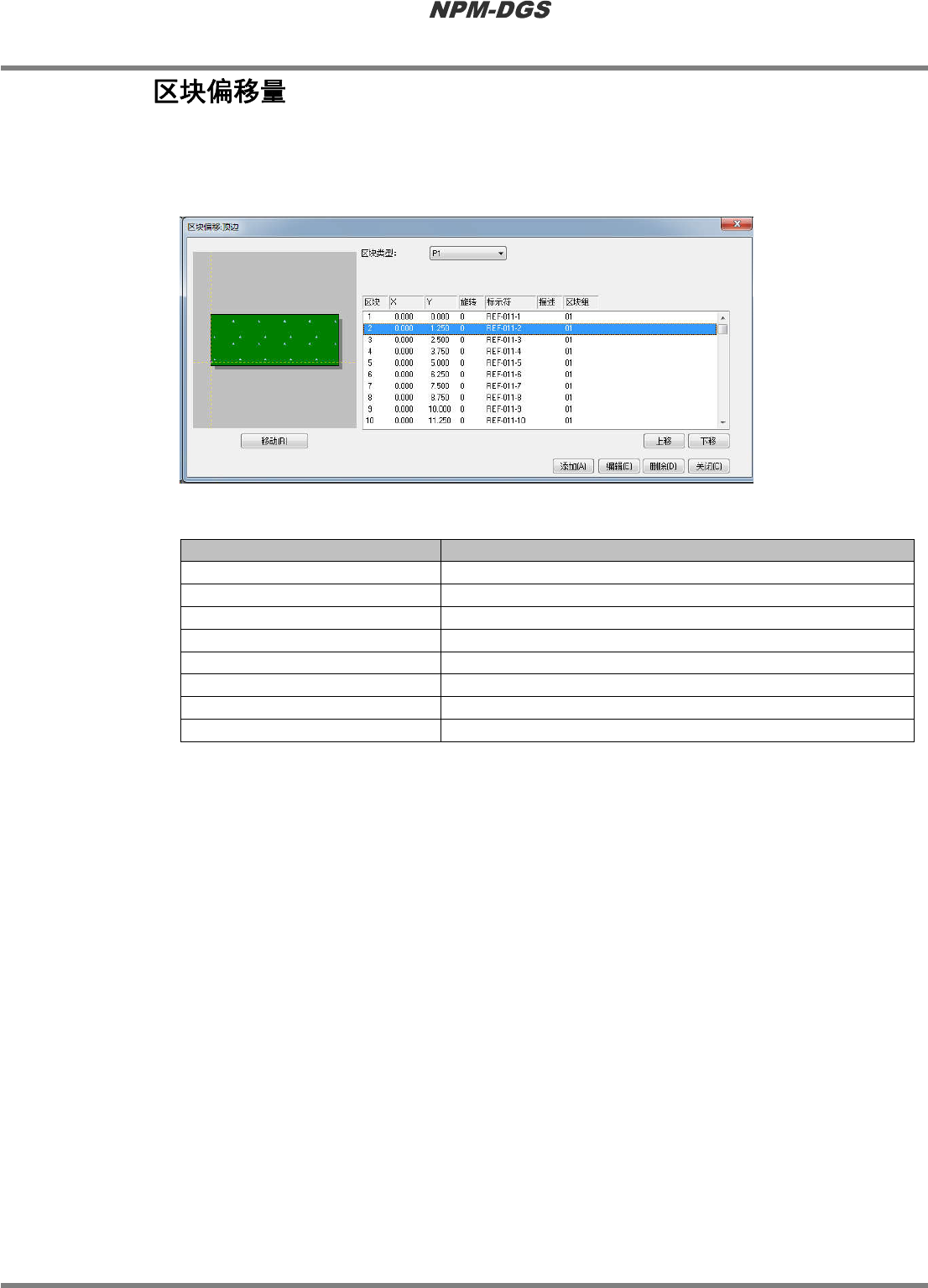 在区块偏移量画面上设定各区块的偏移量信息。