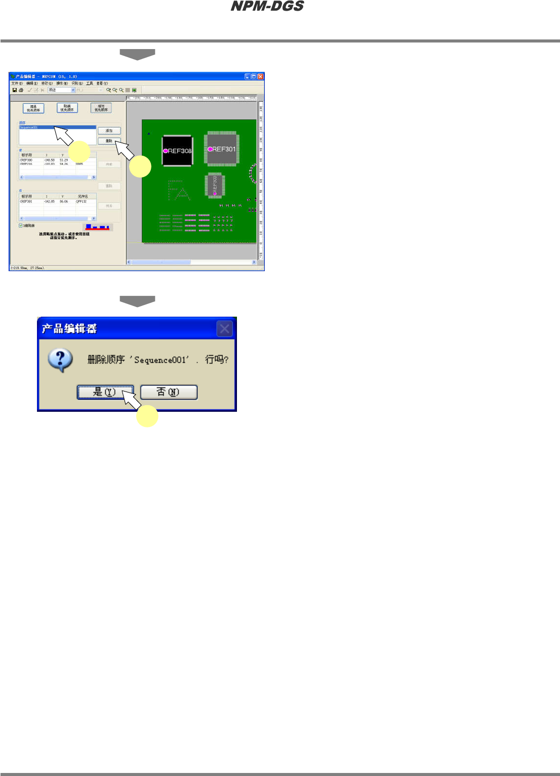 程序手册 5.8 PCB 编辑 Page 5-324 EJS9AC-MB-05P-20 3 在一览表中选择要删除的序列。 4 点击 [ 删除 ] 。 · 显示出确认画面。 5 点击 [ 是 ] 。 · 在序列一览表中所选的 序列将被删除。 Project050809S-33C02 3 4 Project 050809S-35C00 5