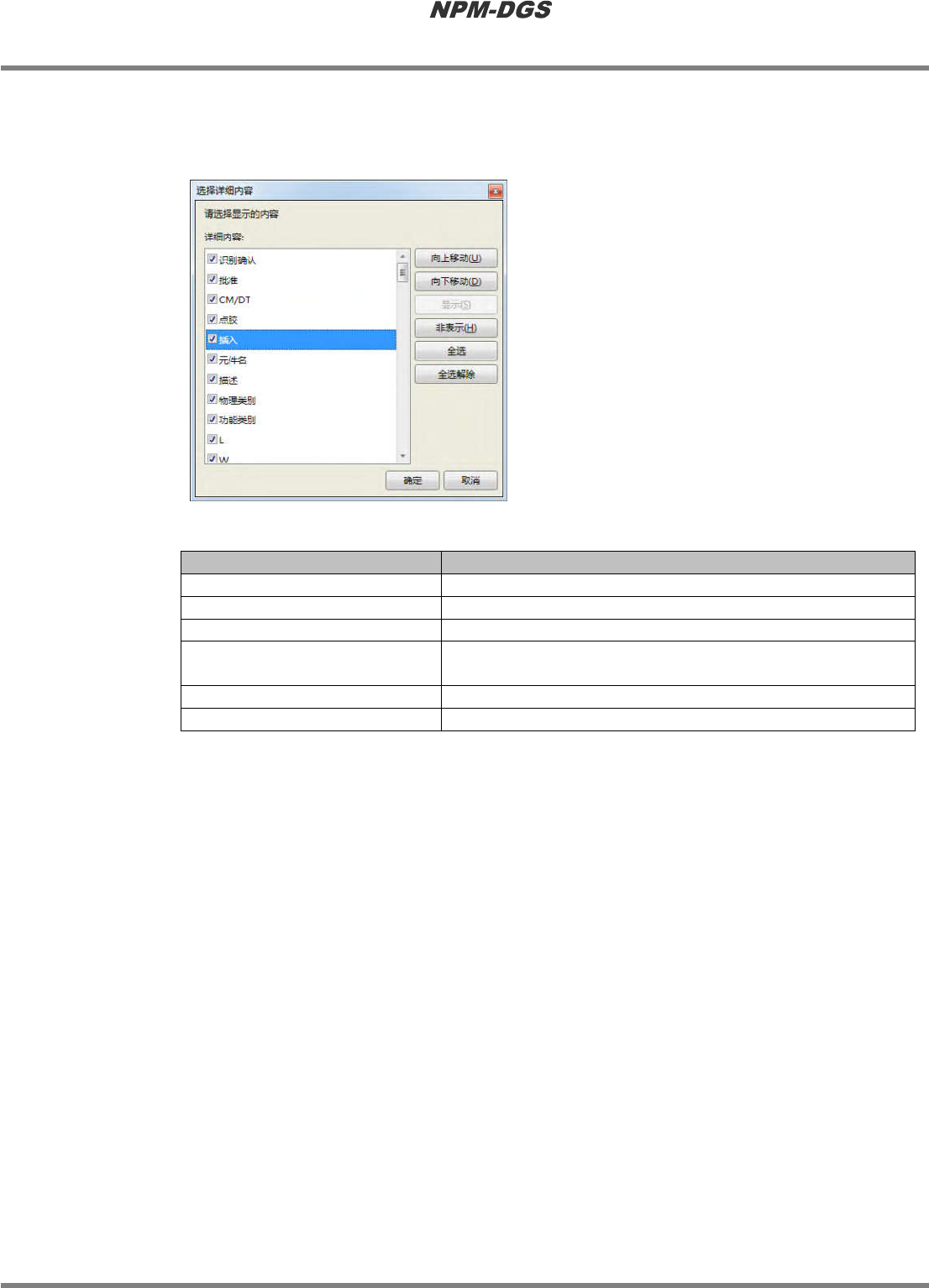 将所选择项目的顺序向上移动。