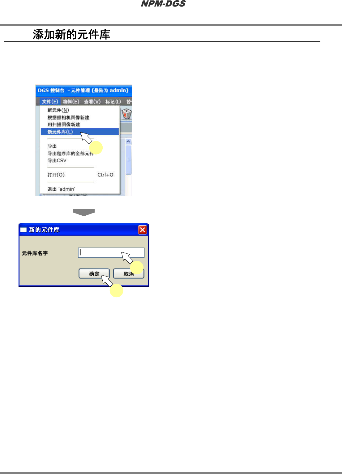 程序手册 6.2 添加新的元件库 Page 6-16 EJS9AC-MB-06P-18 6.2 通过元件库可进行元件数据的分类和 管 理。 n 定义新的元件库 3 选择菜单栏的 [ 文件 ] ® [ 新元件库 ] 。 · 将会显示 < 新的元件库 > 。 4 输入编制的元件库名字。 * 不能使用下述文字。 % ” 空格 全角文字 * 以 PT200 规则为基准。 5 点击 [ 确定 ] 。 · 新元件库将会添加到下 拉菜单中…