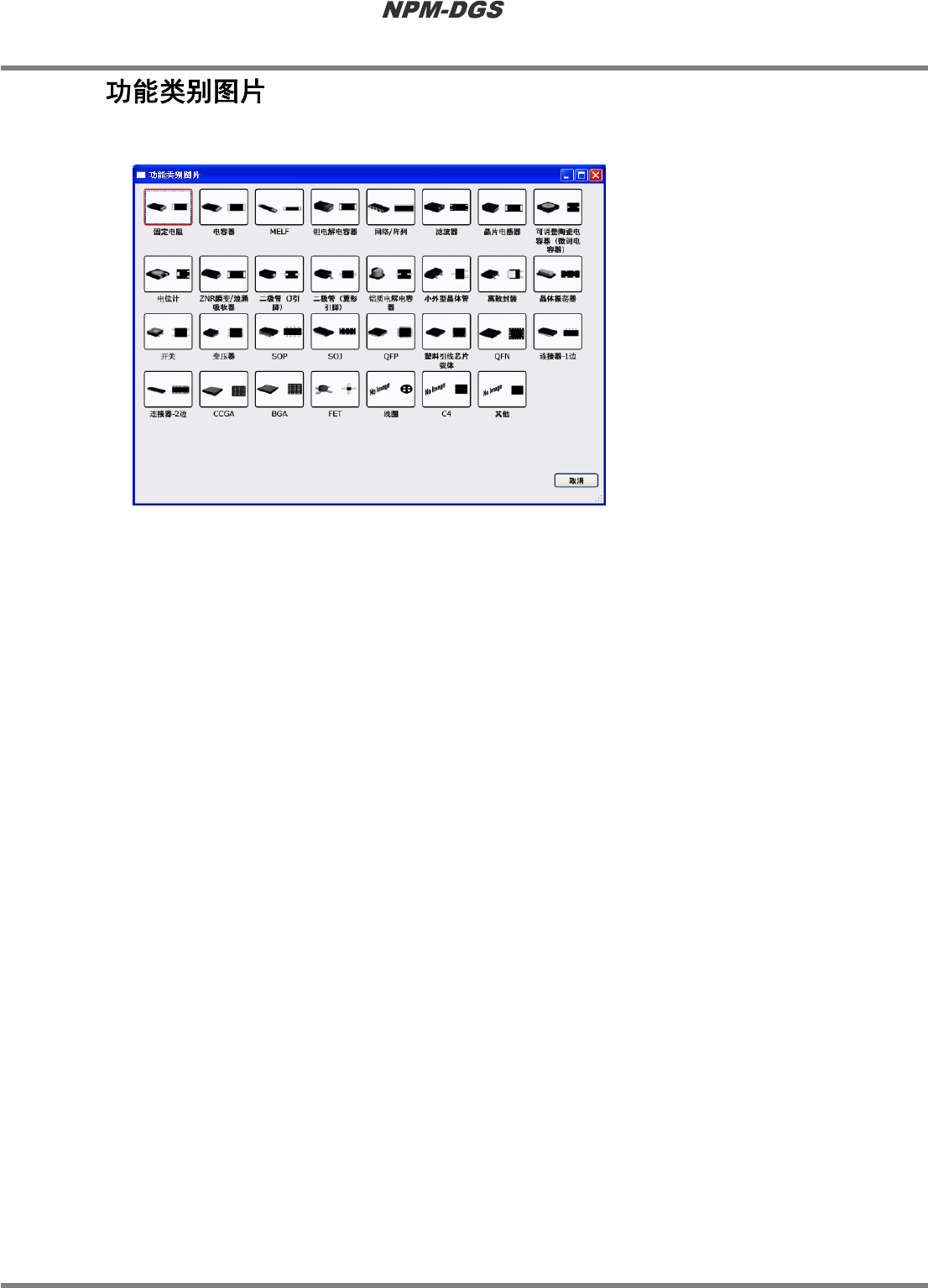 画面上选择功能类别。选择元件的功能类别时,点击目的的图片。